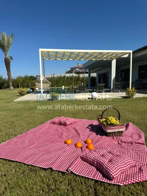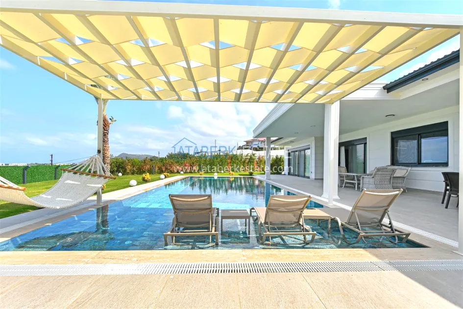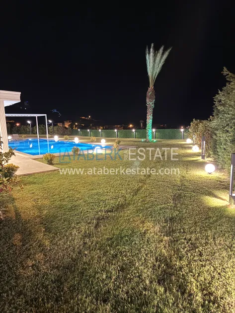 The property is presented as a detached villa on a private plot of 1,433 m². The property includes a garden, a spacious pool terrace, outdoor parking and a 12 m² utility room (depo). An atmosphere of privacy and freedom reigns here, where every detail is subordinated to your comfort. The distance to the sea is only 1 km, which makes the facility even more attractive for living and recreation.