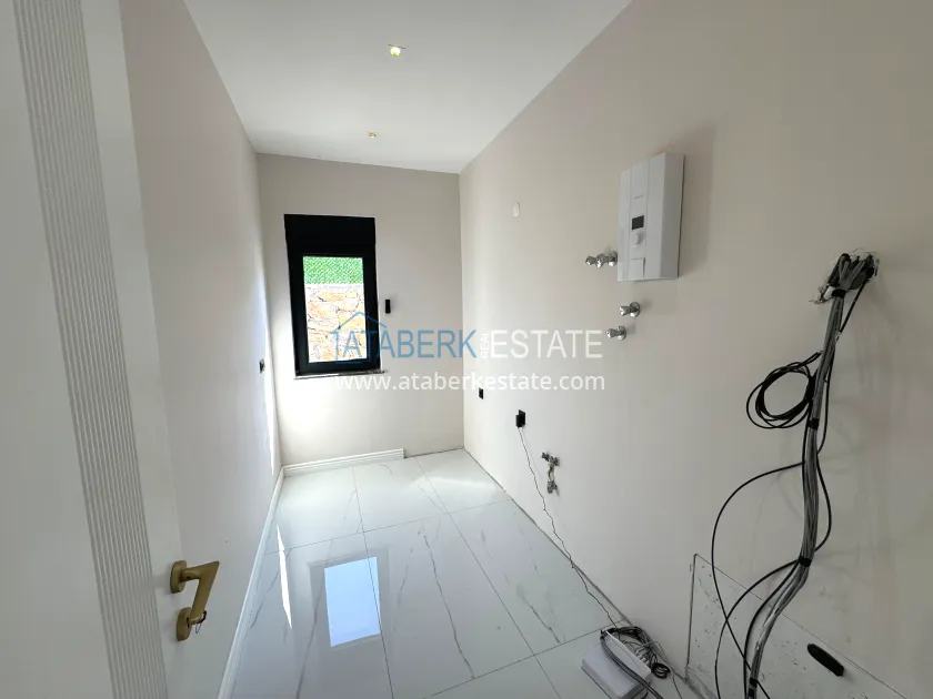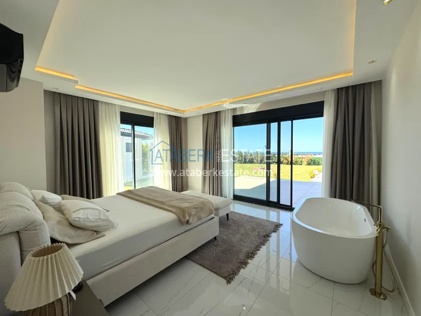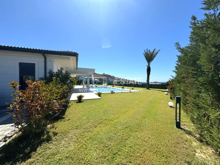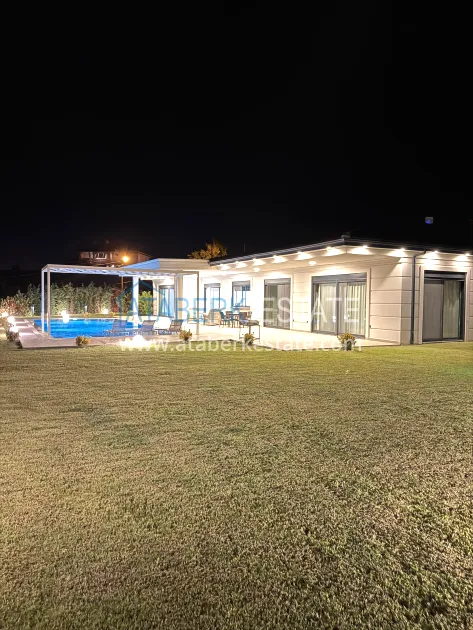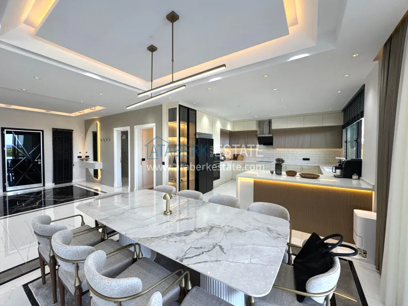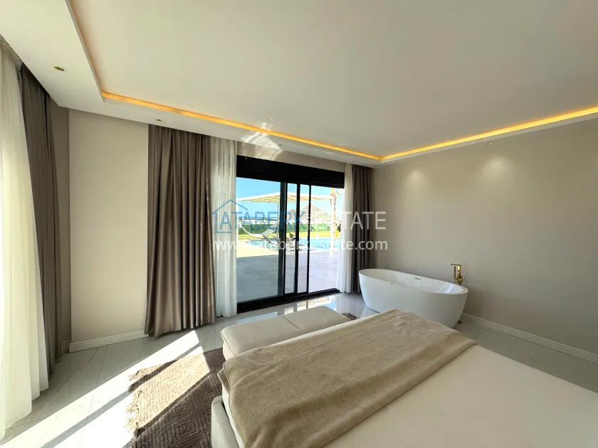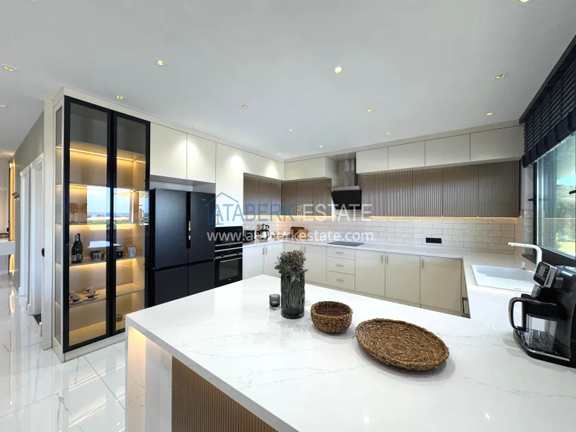 The villa is single-level, with a total area of 280 m², 5+1 layout with a spacious living room and open-plan kitchen and 5 bedrooms. An interesting detail of the interior: one of the bedrooms has a bath — a solution for lovers of comfort and originality. The large windows offer views of the garden and pool, and the single level of construction ensures the convenience and comfort of living. Partial furniture will be a good basis for creating an interior according to your preferences, and a well-thought-out layout will create a harmonious home for the whole family.