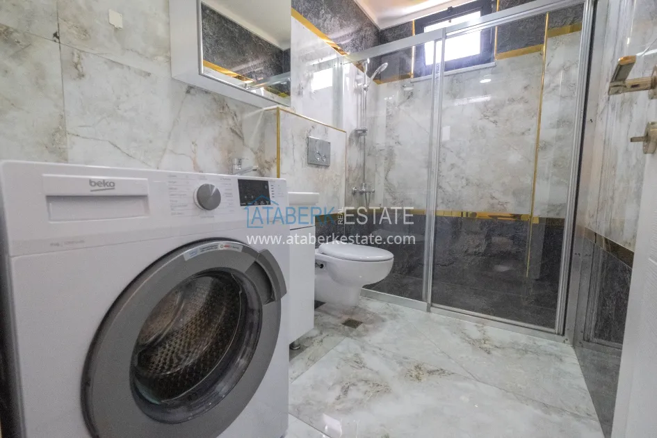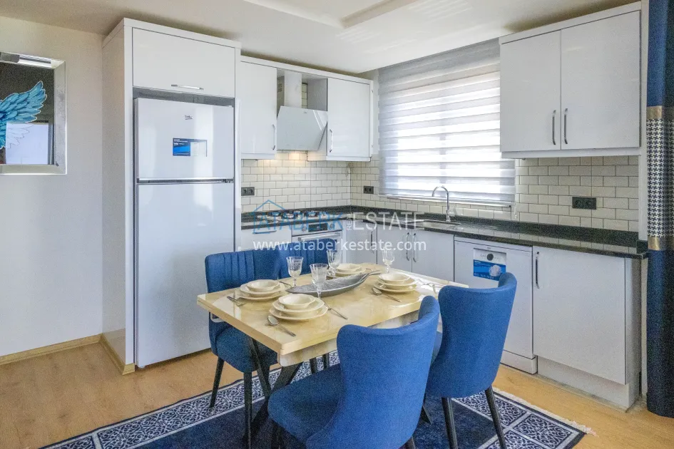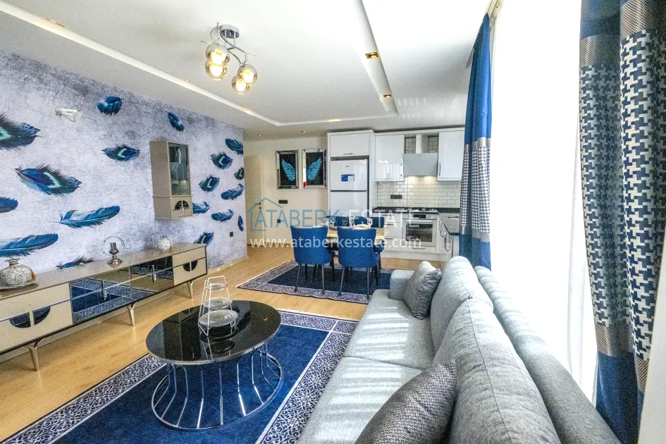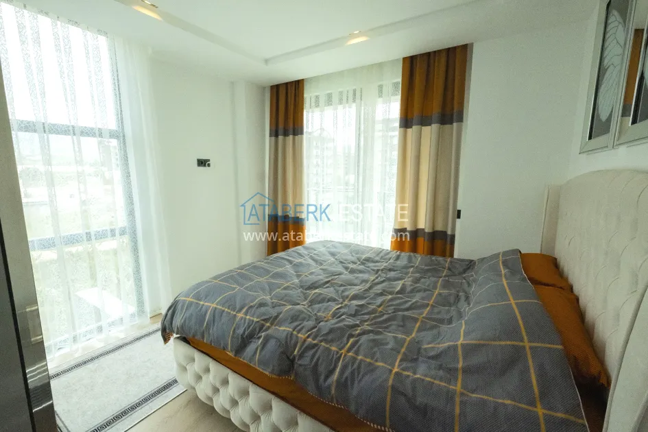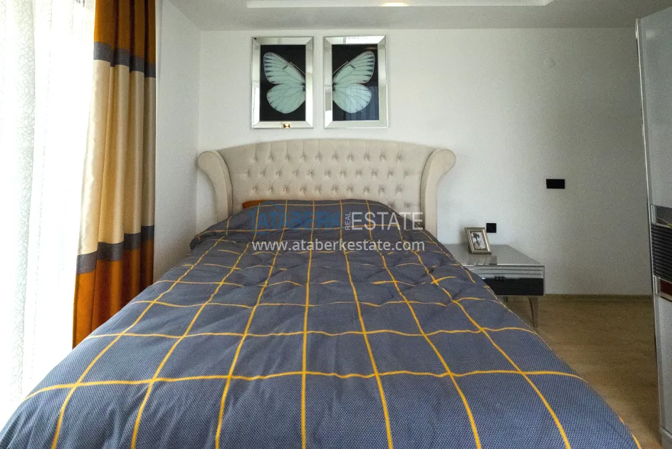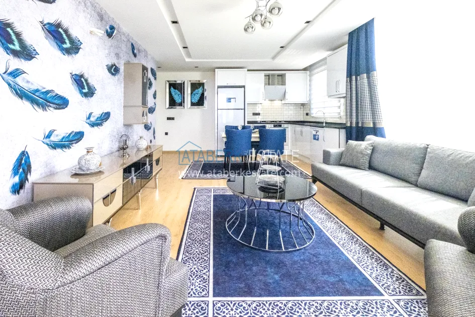 In one of the most prestigious districts of Alanya, Kargicak, in a new residential complex with a closed protected area, a 2+1 apartment with an area of 100 m2 is offered. It is located on the 1st floor of a 5-storey building and includes: a spacious living room with an open-plan kitchen, two bedrooms, two bathrooms and two balconies. The windows are oriented to the south, east and north, so that the apartment maintains a pleasant microclimate during the day. The windows offer beautiful views of the sea, green slopes and city panorama. The apartment is partially furnished and equipped with household appliances and is fully ready for occupancy.