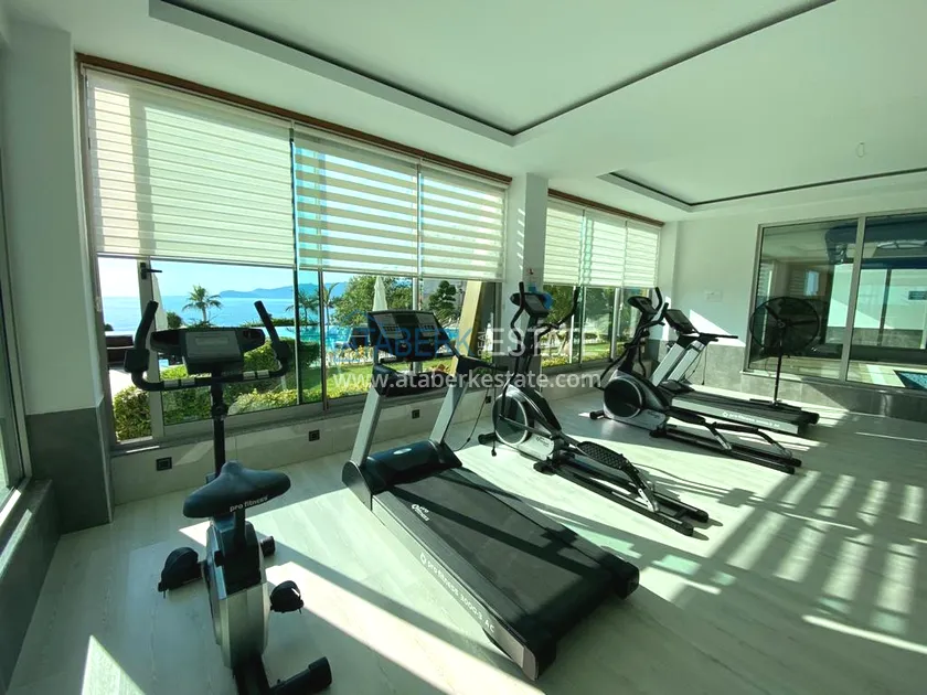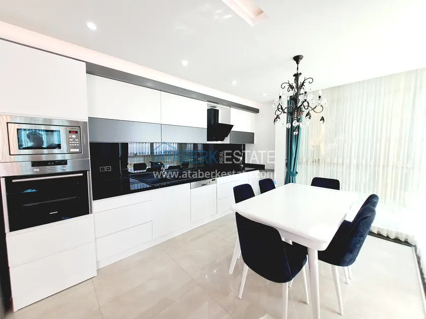 Apartments layout 2+1 are located on the first residential floor, have a total area of 125 m2. The space includes: a spacious living room, combined with an open kitchen, two isolated bedrooms, two full bathrooms (one of which - in the master bedroom, there is also a dressing room). The highlight of the apartment - two glazed balconies, one of which additionally opens onto an open terrace with artificial lawn and stunning views of the sea and pool. The apartment is fully furnished and equipped with household appliances. Everything is decorated in the same modern style - here you can move in without additional investments.
