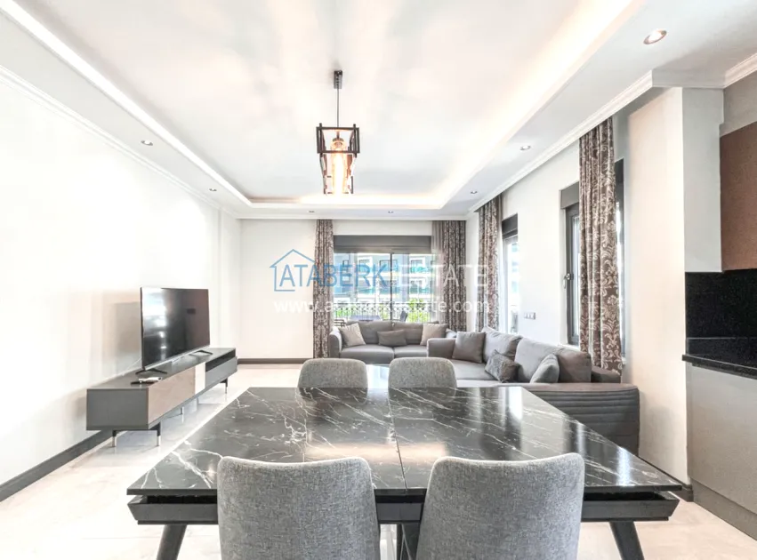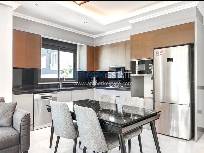 This spacious furnished apartment is located on the ground floor and is oriented to the northwest, which ensures a pleasant coolness during the summer. The 2+1 layout includes a living room with a kitchen area, two separate bedrooms, two bathrooms and two balconies. The total area is 100 m². Furniture and appliances are included in the price, everything is in excellent condition — you can move in right after the deal.