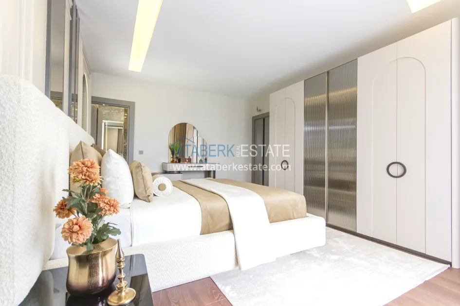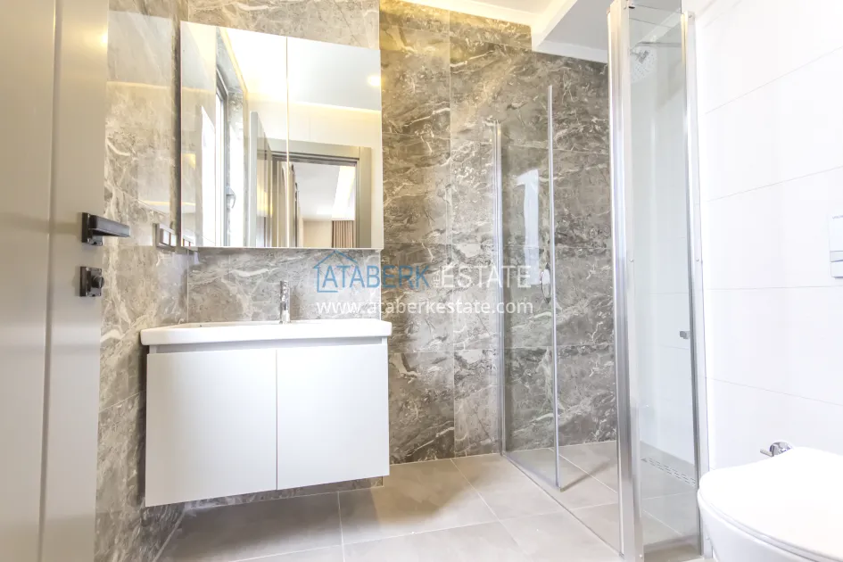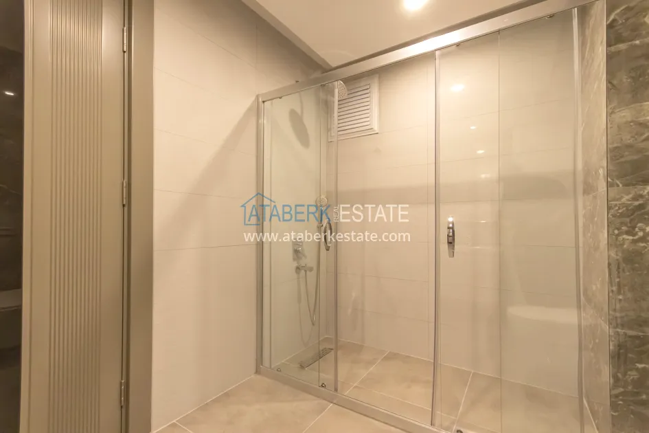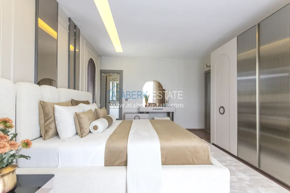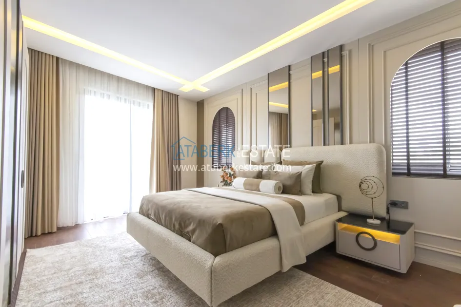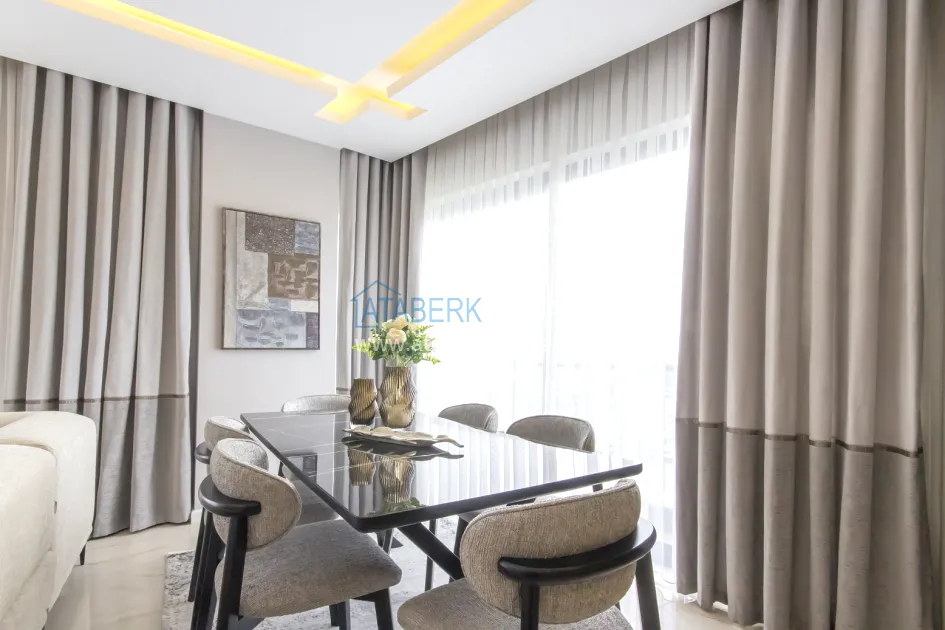 We offer 2+1 apartments with an area of 135 m2, 3+1 - 170 m2, as well as 3+1 and 4+1 penthouse duplexes with an area of 150 and 220 m2. Technical characteristics: fine finishing, interior doors, audiovisual intercom, floor heating system, aluminum frames with double glazing, ceramic floors, spot lights in all rooms, air conditioners, built-in MDF kitchen with a package of household appliances, equipped bathrooms.