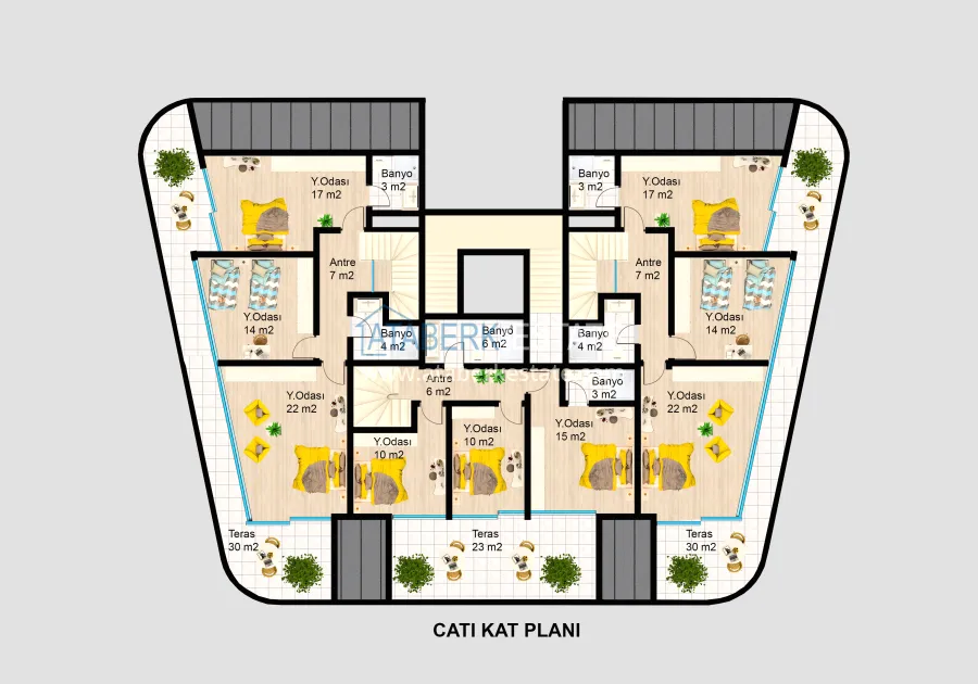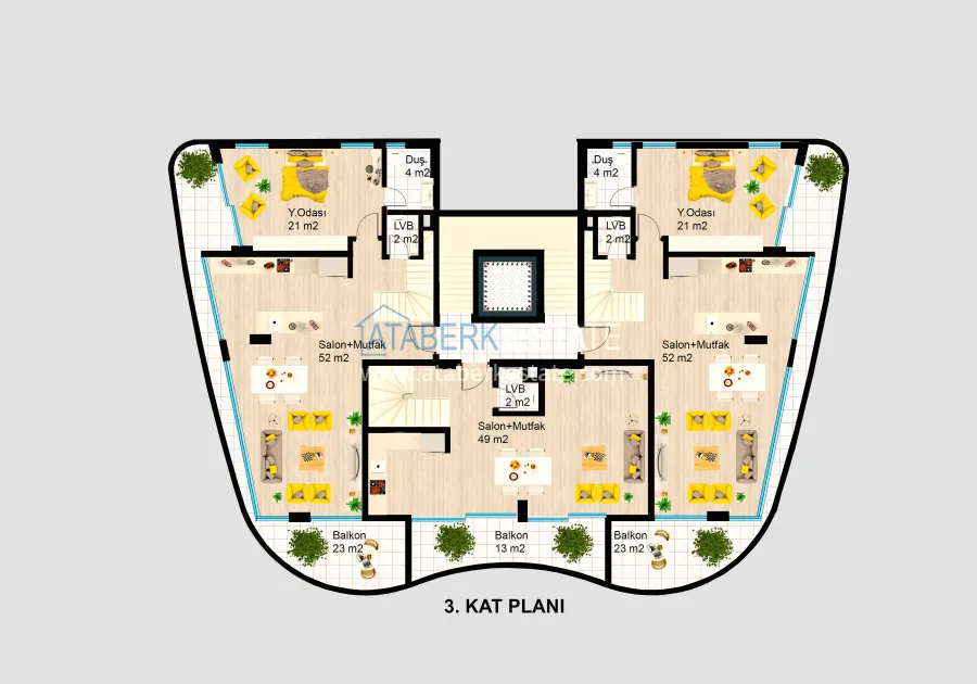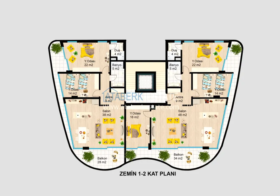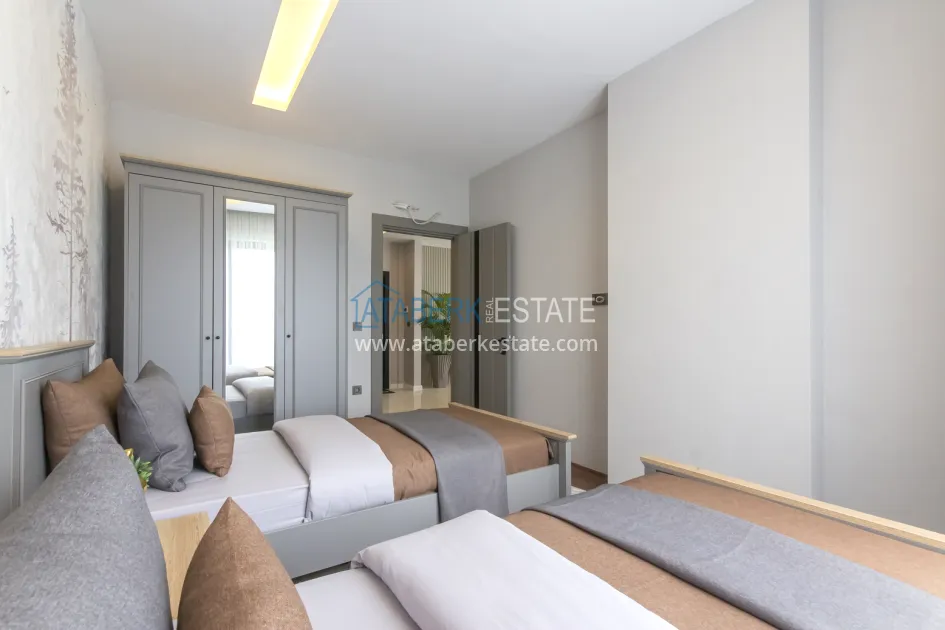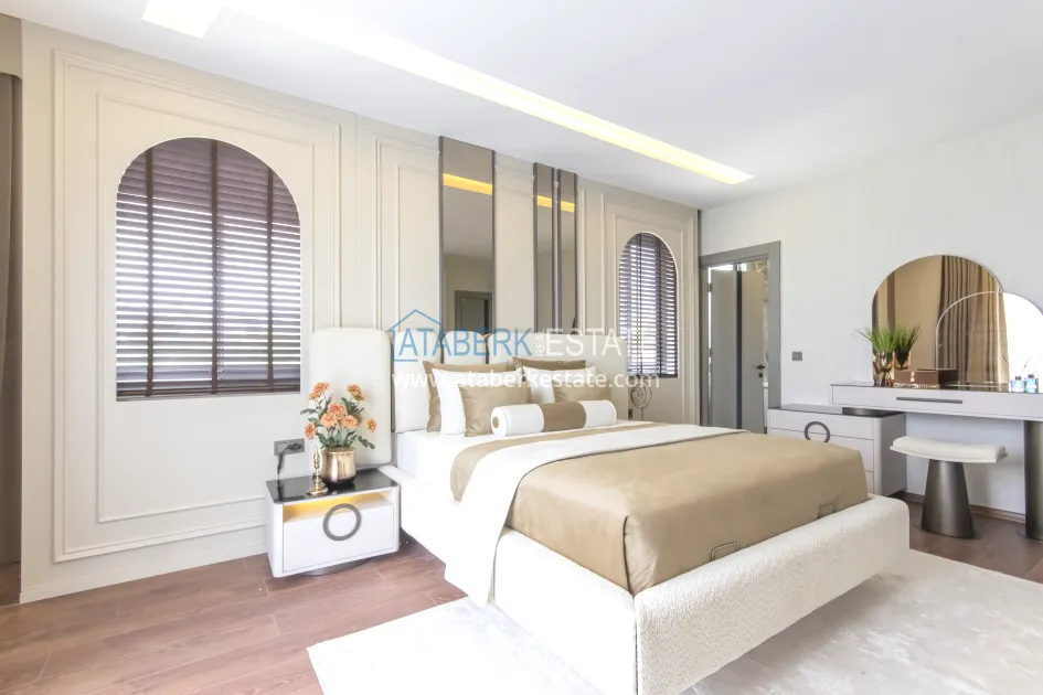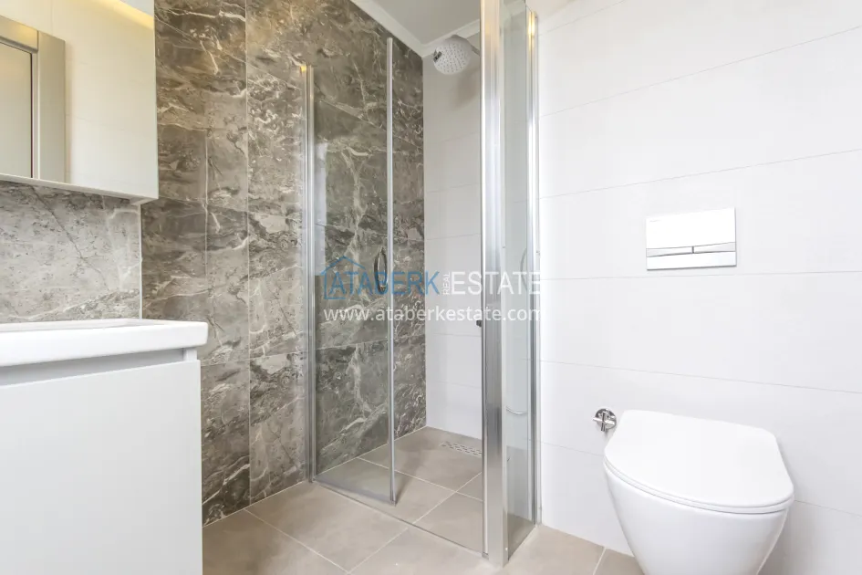 We offer 2+1 apartments with an area of 135 m2, 3+1 - 170 m2, as well as 3+1 and 4+1 penthouse duplexes with an area of 150 and 220 m2. Technical characteristics: fine finishing, interior doors, audiovisual intercom, floor heating system, aluminum frames with double glazing, ceramic floors, spot lights in all rooms, air conditioners, built-in MDF kitchen with a package of household appliances, equipped bathrooms.