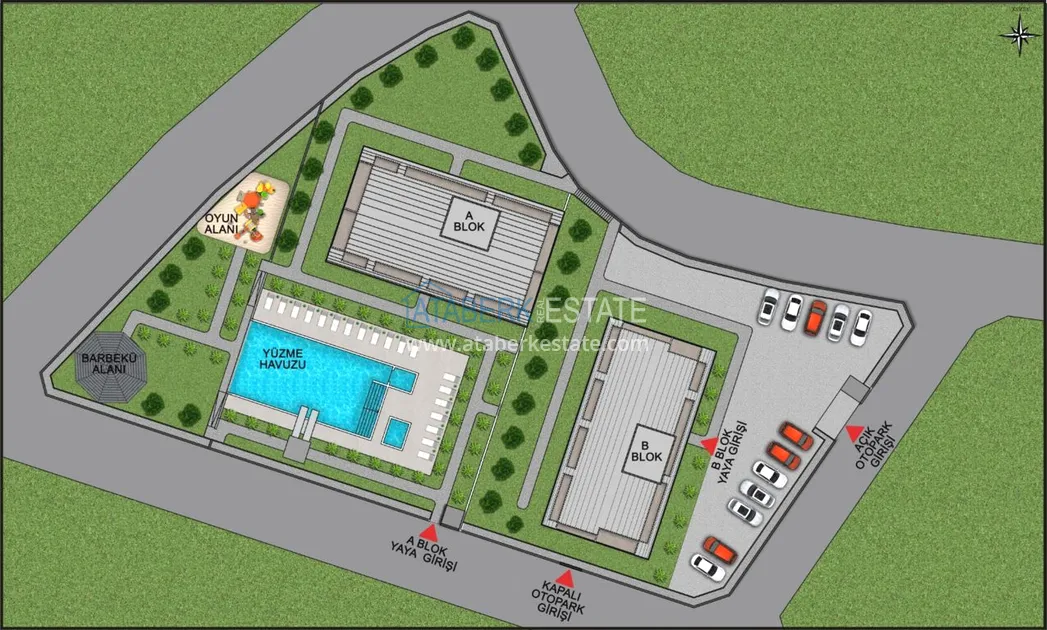 In a picturesque, ecologically clean area of Alanya, the construction of a low-rise residential complex is being completed. The residence consists of two five-story blocks and a closed area with a self-sufficient internal infrastructure. The building area is 4900 sq. m.