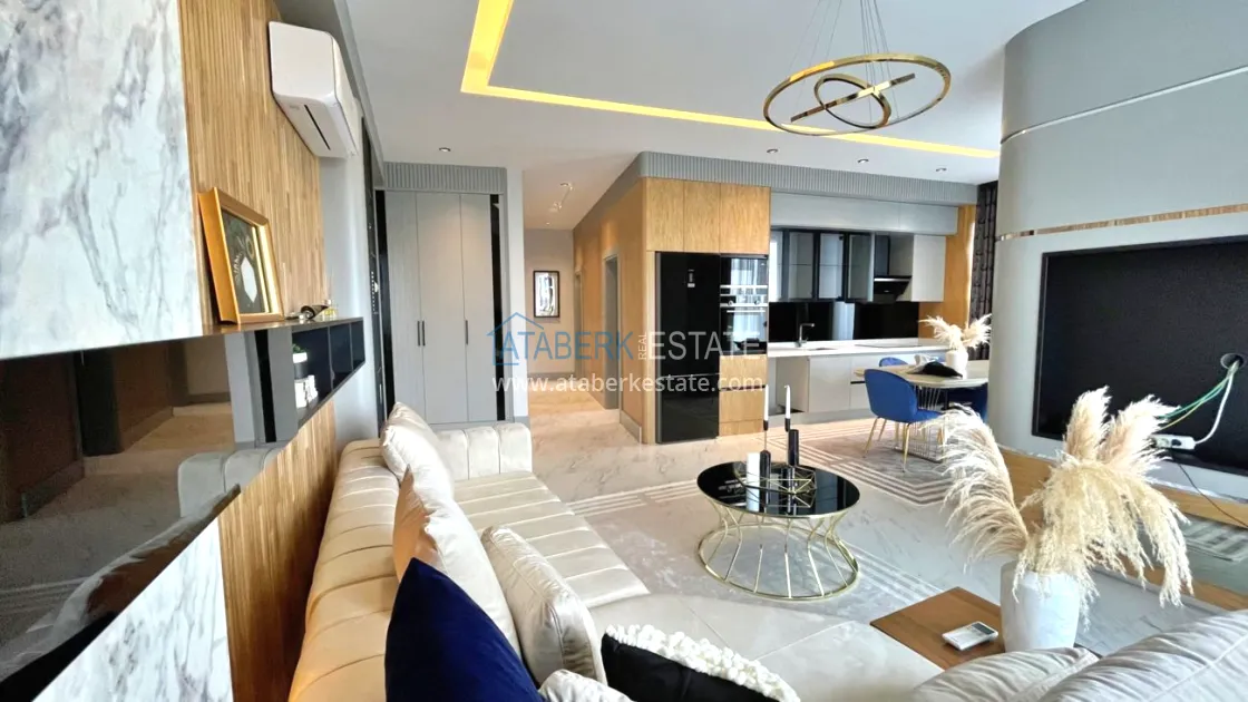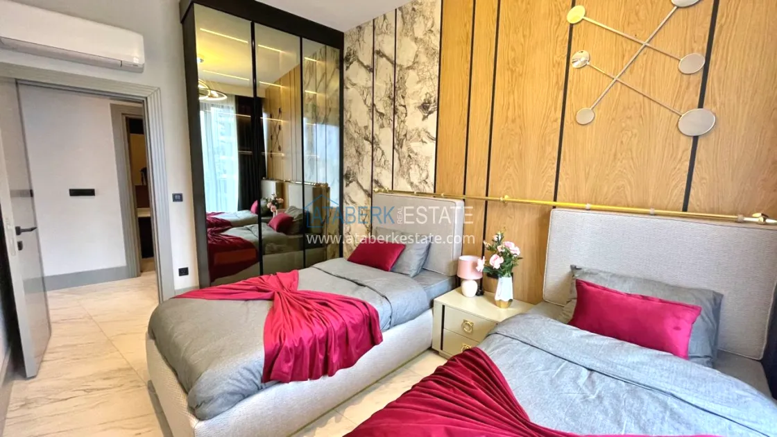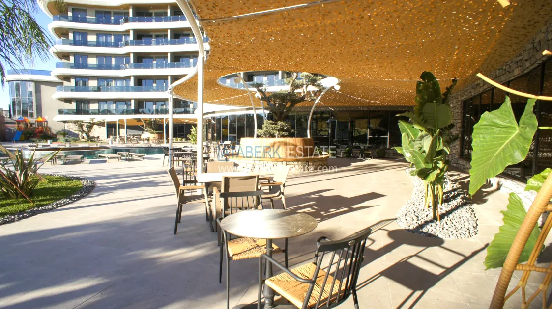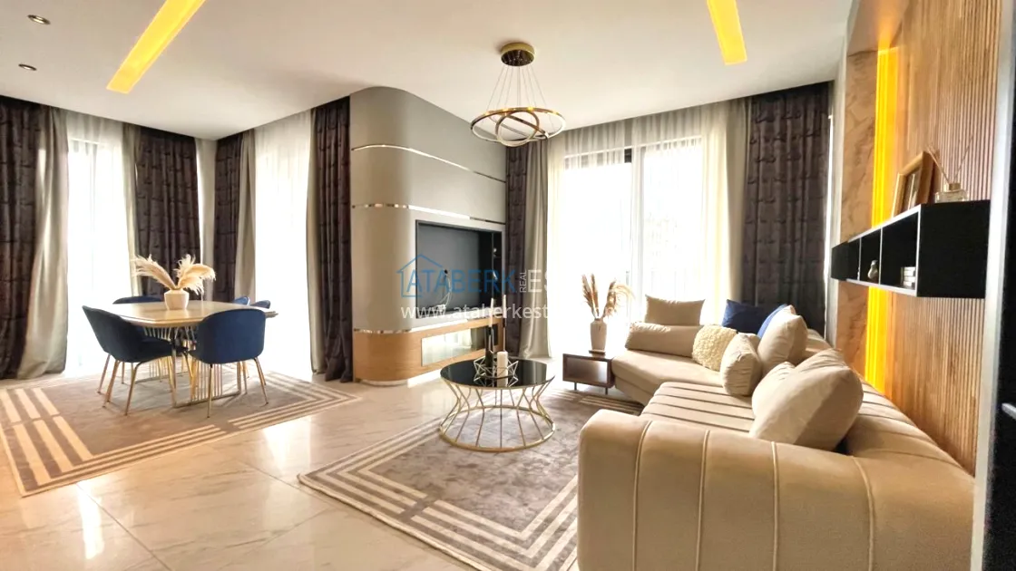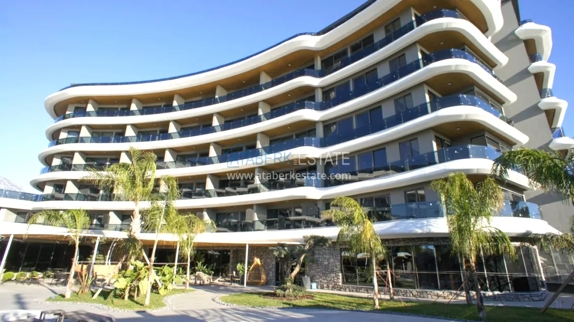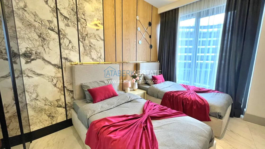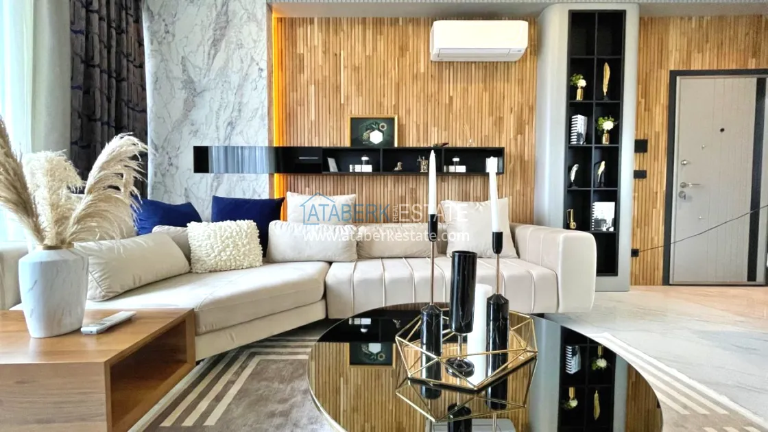 Luxury real estate by the sea - three-room apartments with new modern furniture and appliances in a prestigious residential complex at the beginning of the Kargicak district.