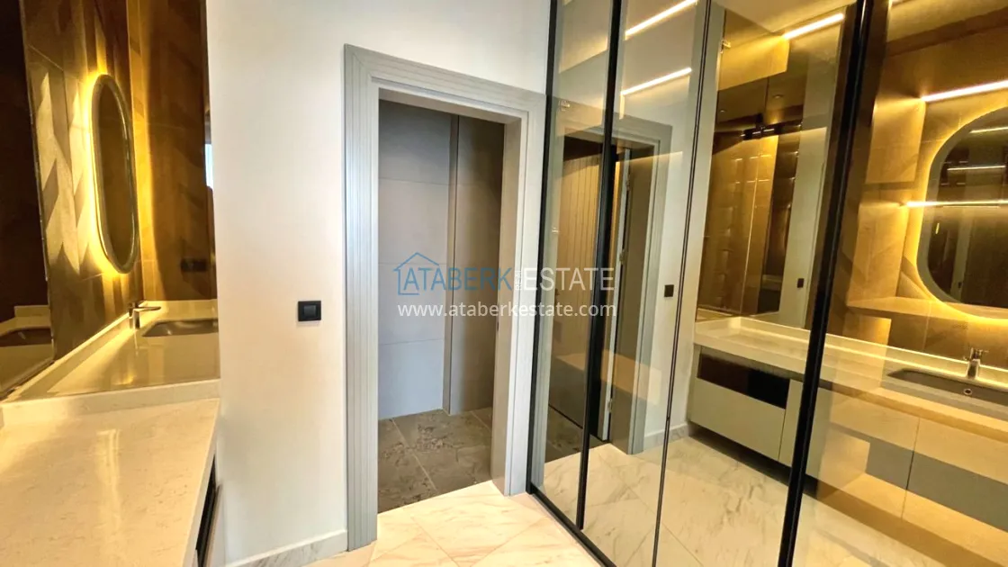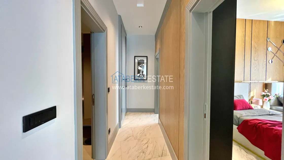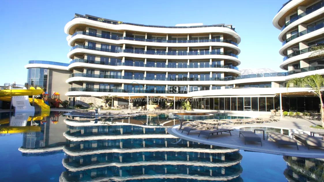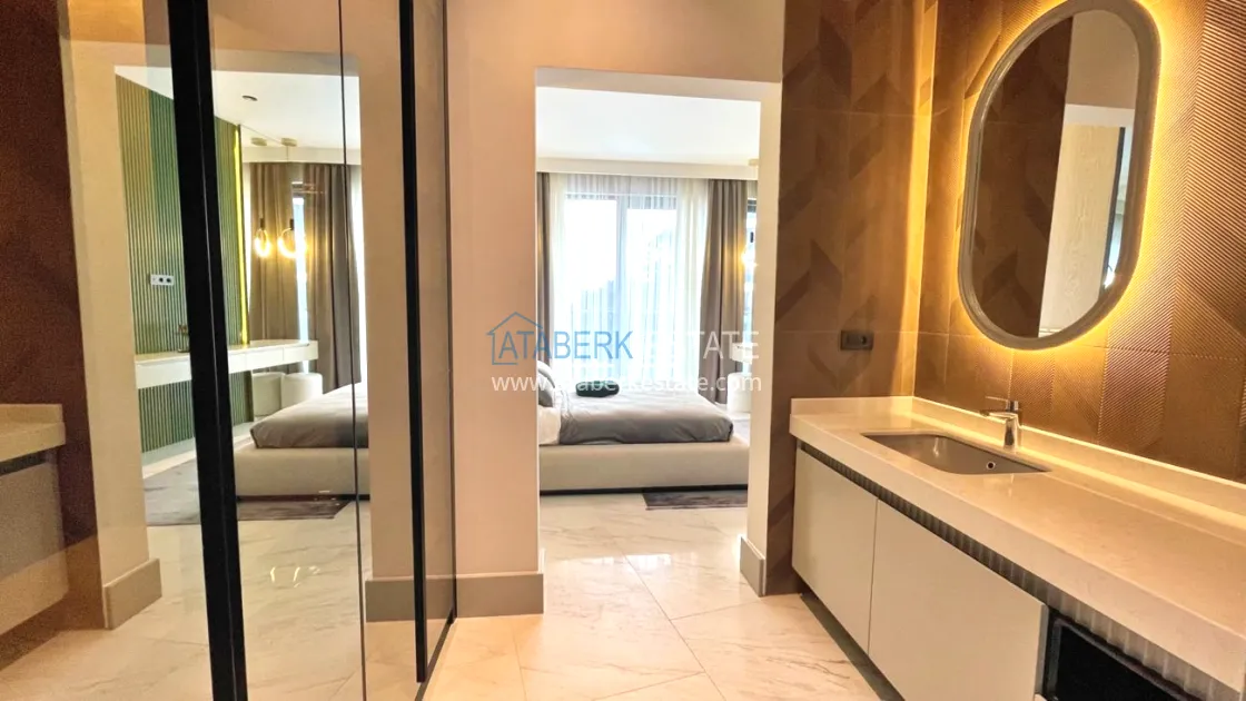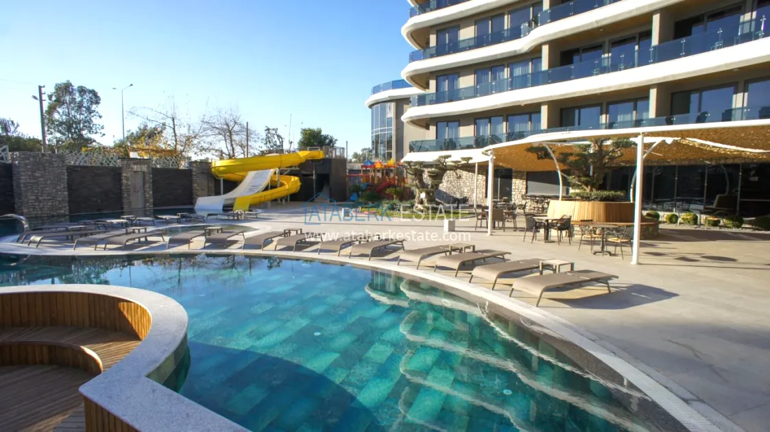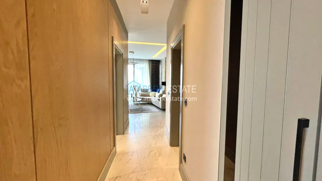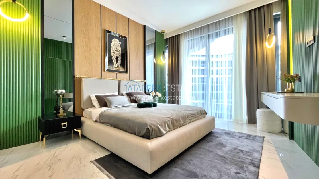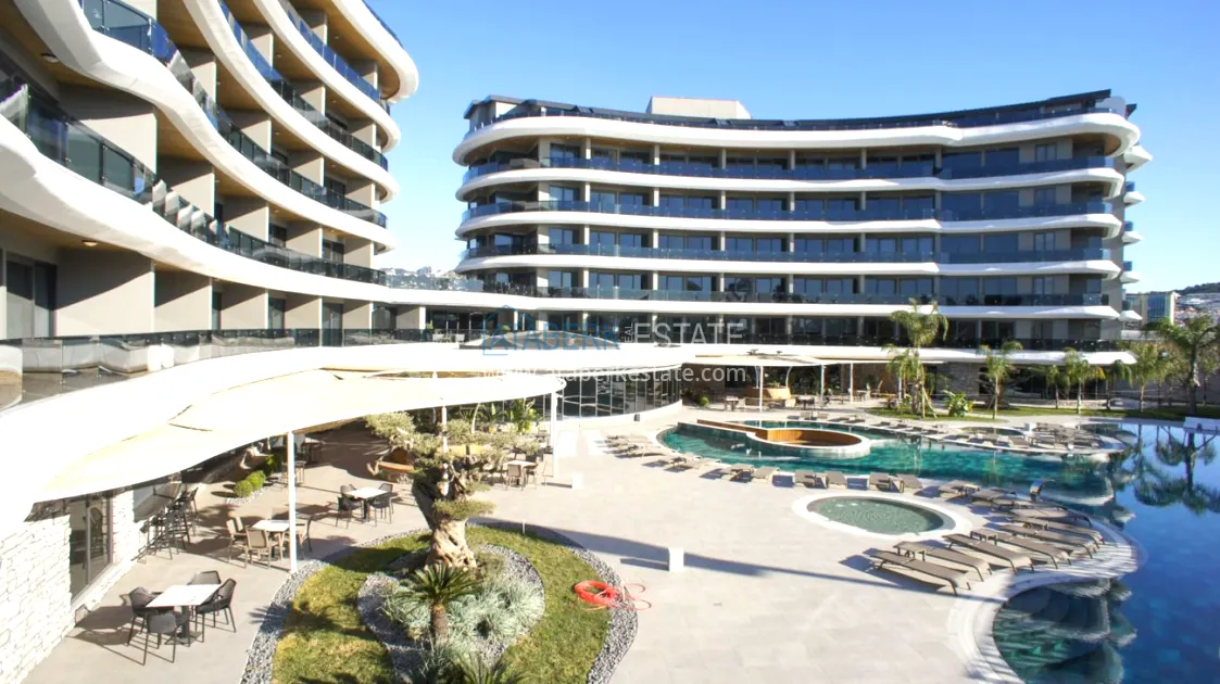 Luxury real estate by the sea - three-room apartments with new modern furniture and appliances in a prestigious residential complex at the beginning of the Kargicak district.