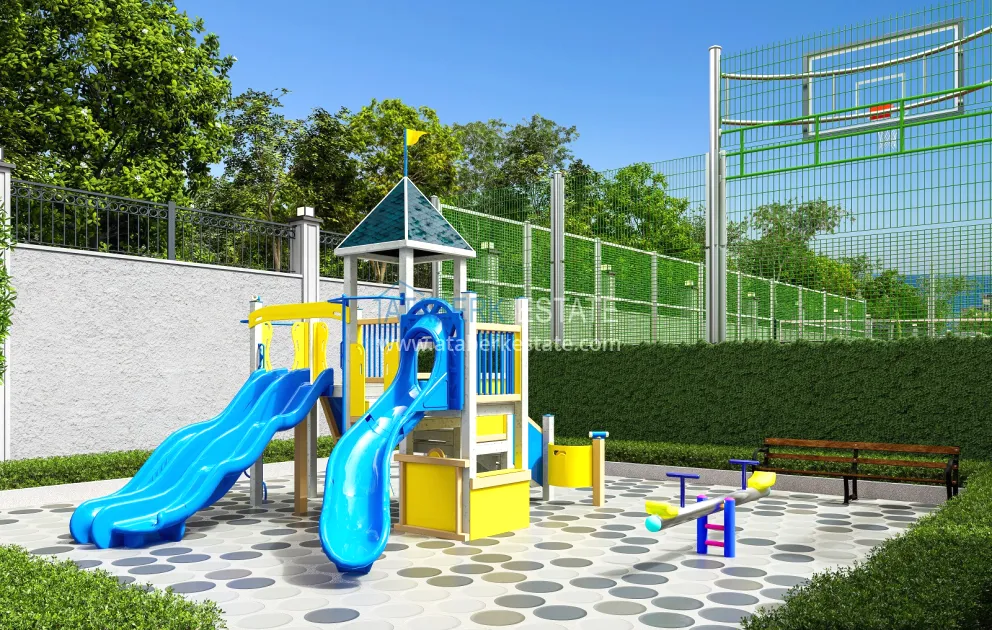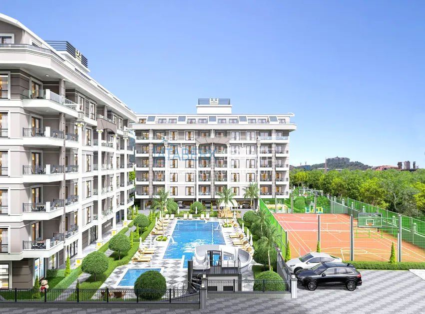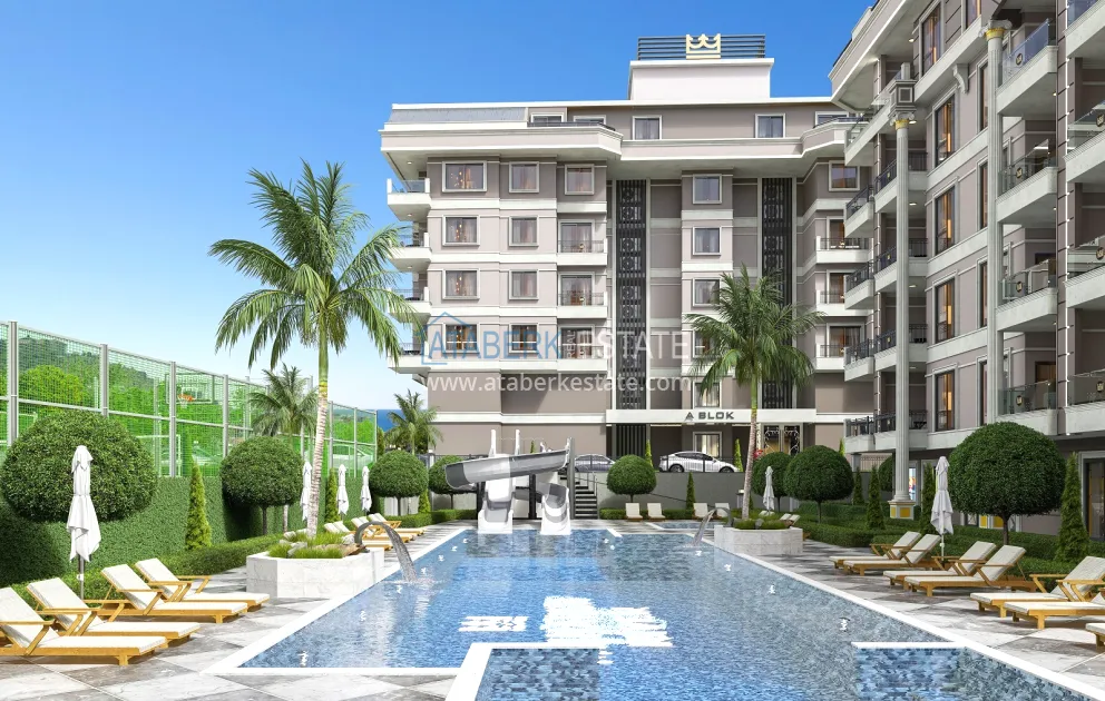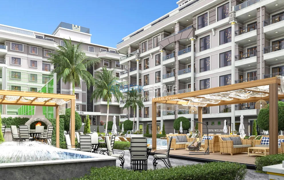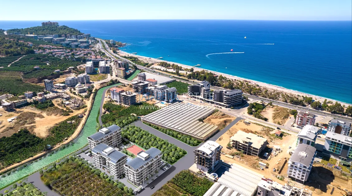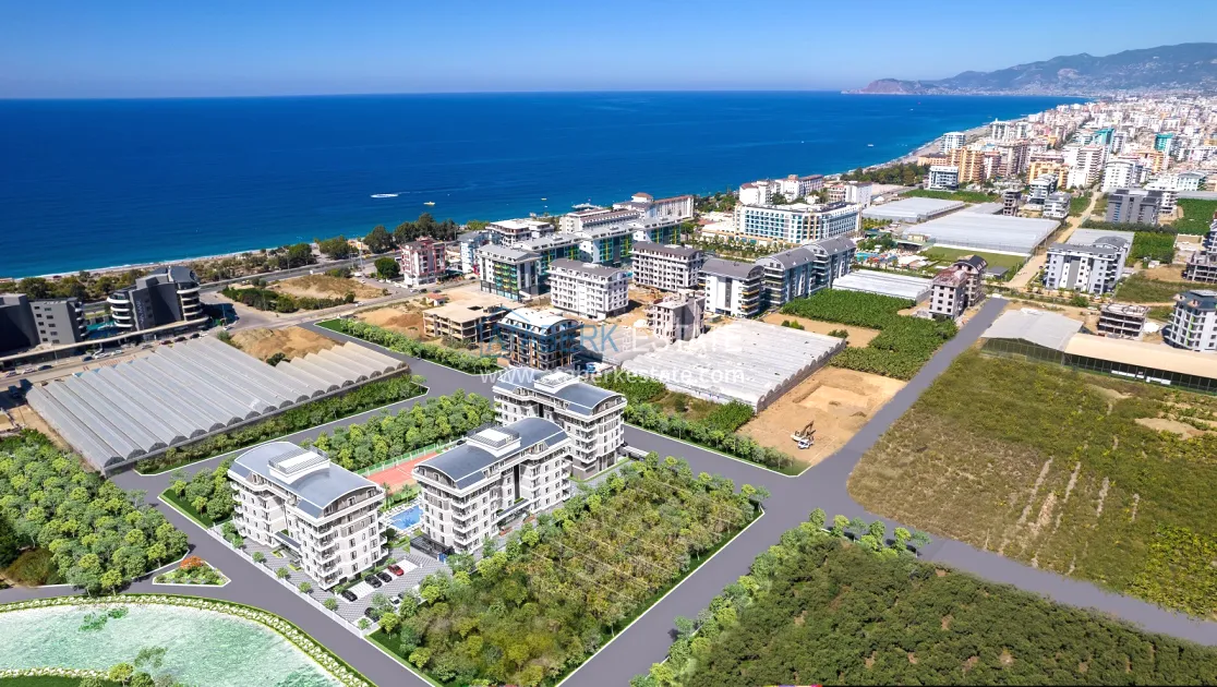The complex is located just 300 meters from the sea, which provides easy access to the beach and marine activities. Mahmutlar district is just 1 kilometer from the complex, and Alanya city center is 13 km away. Gazipasa International Airport is 28 km away and Antalya Airport is 140 km away. This provides convenience when traveling and connecting with other regions.