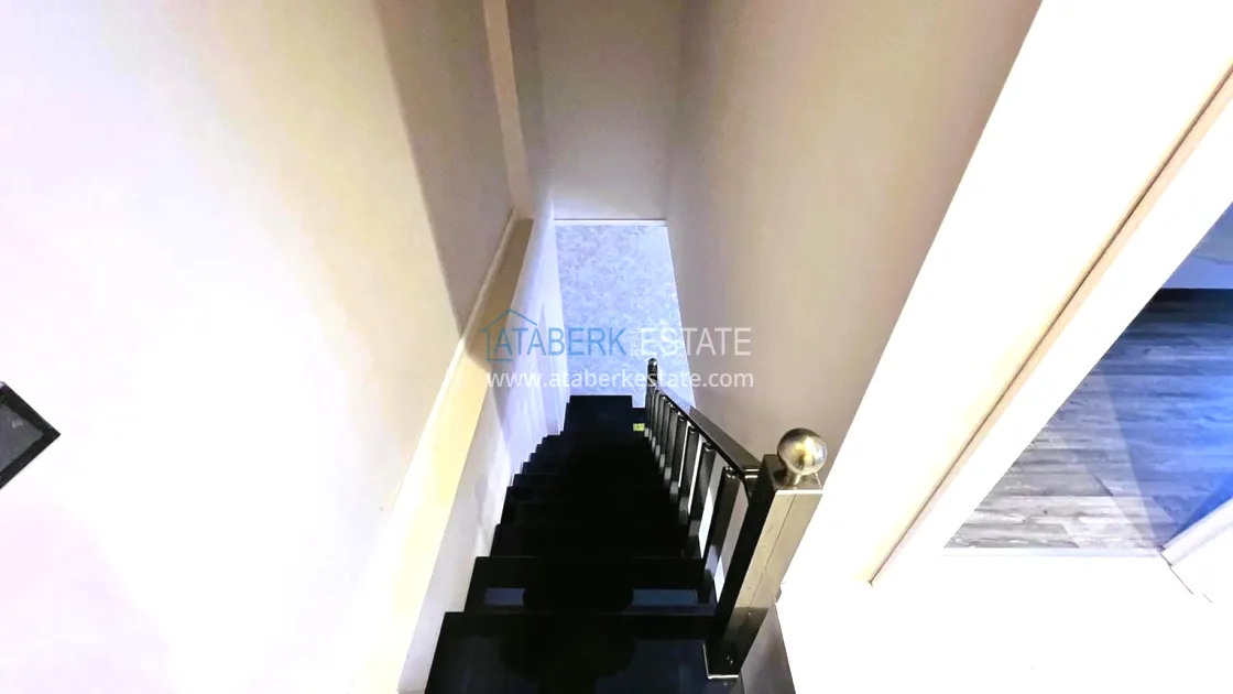 The proposed 2+1 apartment has a total area of 130 m2 and is oriented to the south. On two levels there are: 1st floor — a living room with an American-style kitchen, a guest bathroom and a balcony; 2nd floor — two bedrooms, a shared bathroom and one balcony. The property is for sale in the form shown in the photo — furniture, appliances and interior items.