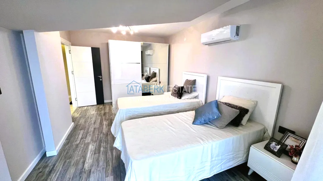The residential complex is built on an area of 11,652 m2 and consists of five blocks and a private protected area. This is a modern complex with an original design, the highest level of comfort and amenities - 5 infinity pools, regular shuttle service to the beach, cleaning and laundry services, 7/24 emergency services and much more. The complex takes into account all the criteria for safe and comfortable housing. The private beach is 700 metres away, and Alanya city centre is 15 km away.