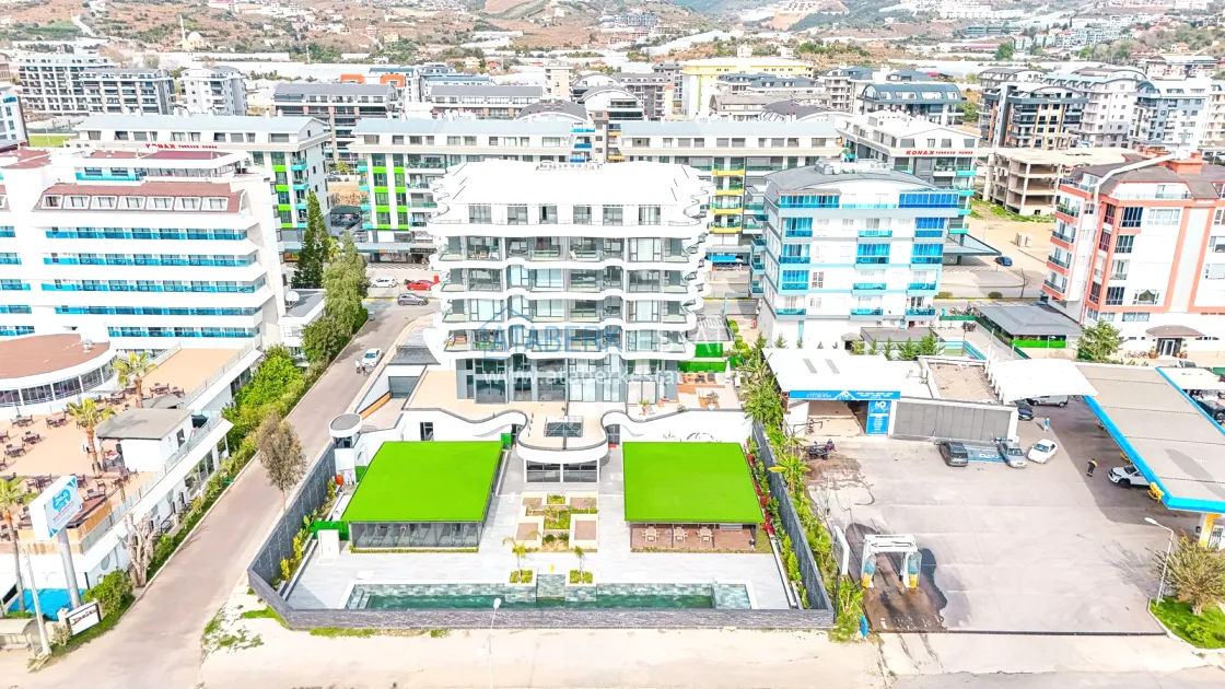 The residential complex will be located on the first line in the Kargicak district. This ecologically clean and quiet corner of Alanya is one of the elite and prestigious areas, and is located in close proximity to Mahmutlar, one of the most international and developed districts of Alanya, and only 25 km from Gazipasa International Airport.
