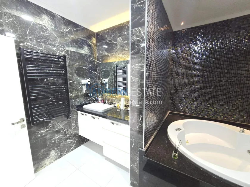 A two-level apartment with a total area of 147 m². The 2+1 layout includes a spacious living room with a kitchen area, two bedrooms, two bathrooms and two large view balconies. On the second level, there is a terrace with a sliding sunshade, an ideal place to relax at any time of the day. One of the bathrooms has a jacuzzi. For additional comfort, bathroom floors are heated, electric towel dryers and high-quality aluminum glazing are provided. The apartment is fully furnished in a luxury format: all furniture, including the kitchen set, is custom made with an emphasis on quality, aesthetics and functionality. The main advantage of the property is its impressive panoramic views of the sea, the mountains, the fortress of Calais, the city and the surrounding landscapes. According to its specific characteristics, the apartment is considered one of the best in the complex