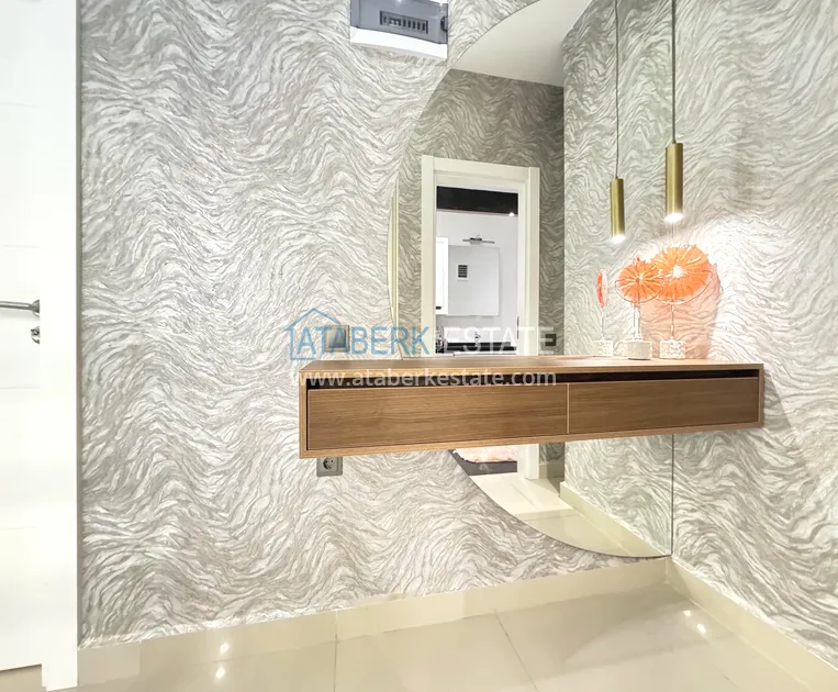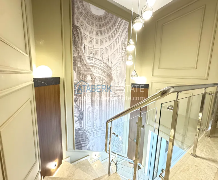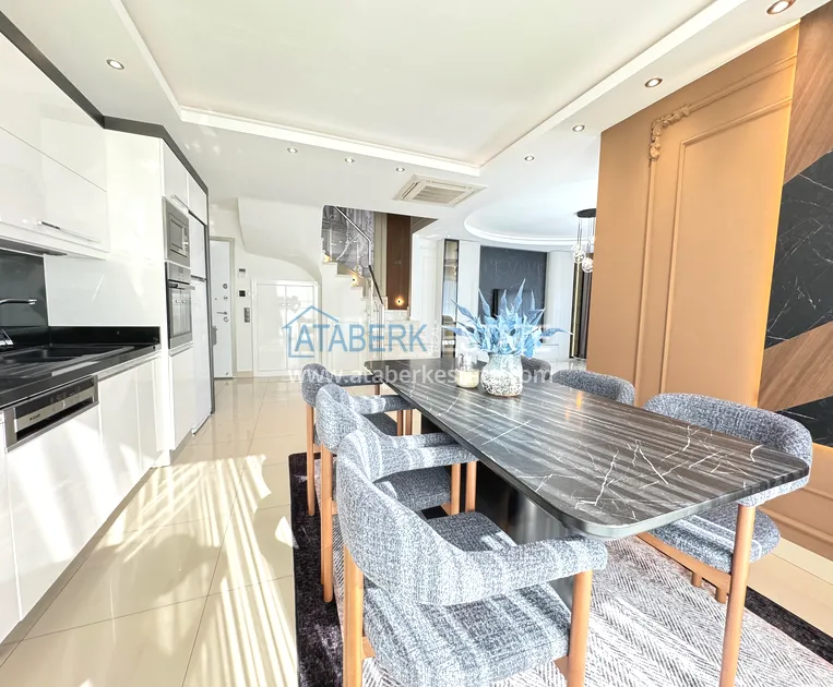. The170 m² apartment is located on the 5th and 6th floors and is sold fully furnished. The 3+1 layout includes a spacious living room, a kitchen area, three bedrooms, bathrooms, balconies and a functional distribution of space on two levels. The south-east orientation provides plenty of natural light in the morning, a pleasant sunny atmosphere and a comfortable microclimate. The apartment offers a magnificent panoramic view of the sea, which will become the main attraction of everyday life.