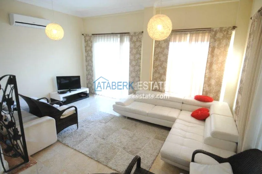 Gold City is a famous complex representing the best infrastructure on the Alanya coast. The complex has stunning views of the Mediterranean coast and the Taurus Mountains.This complex offers for sale a three-bedroom villa from the owner. The villa is sold with furniture and household appliances, as in the photo.