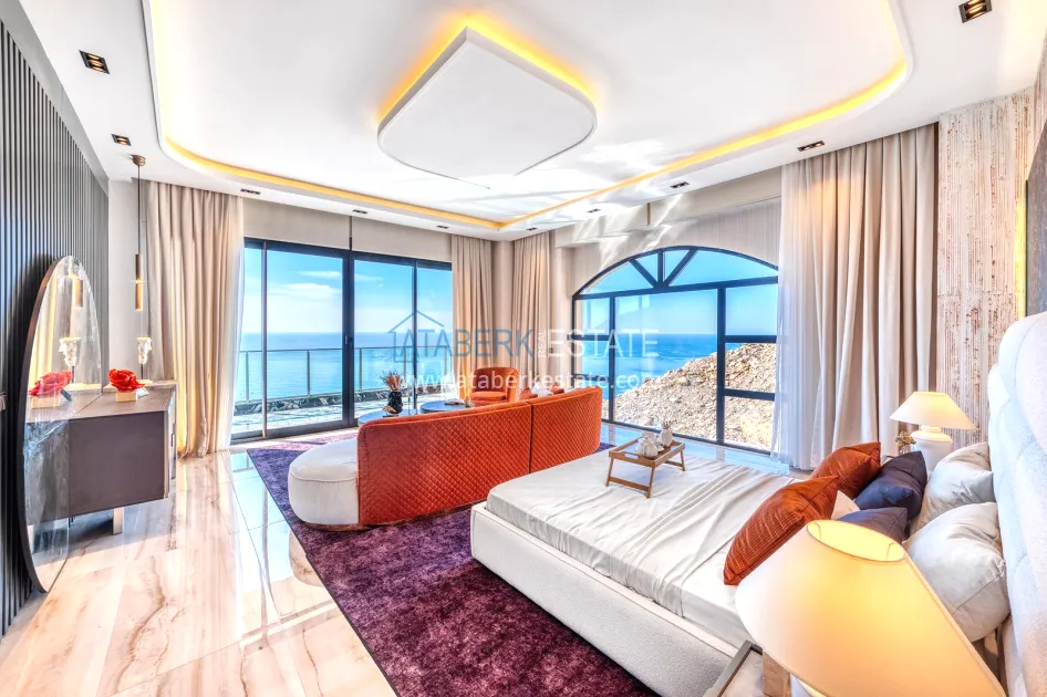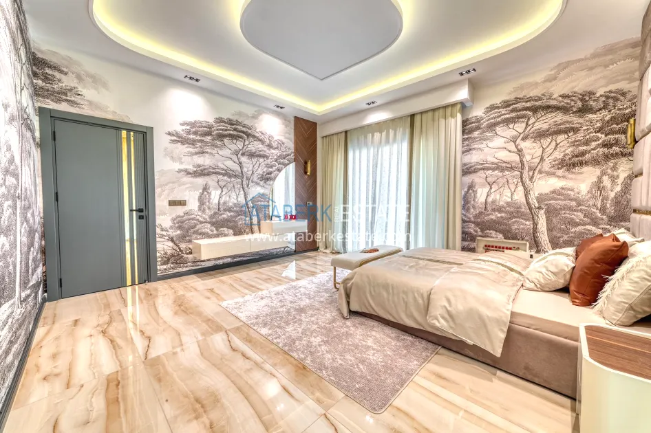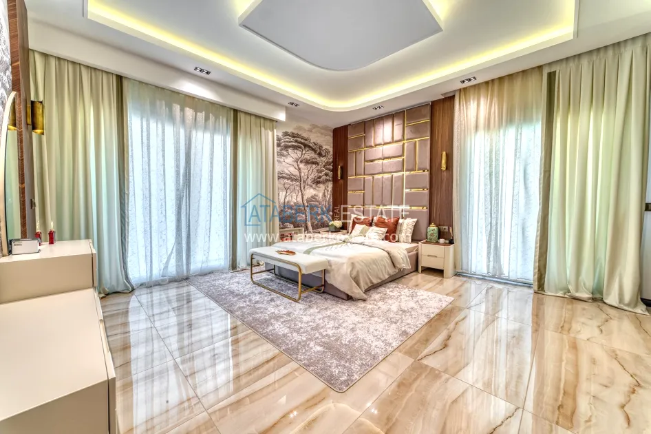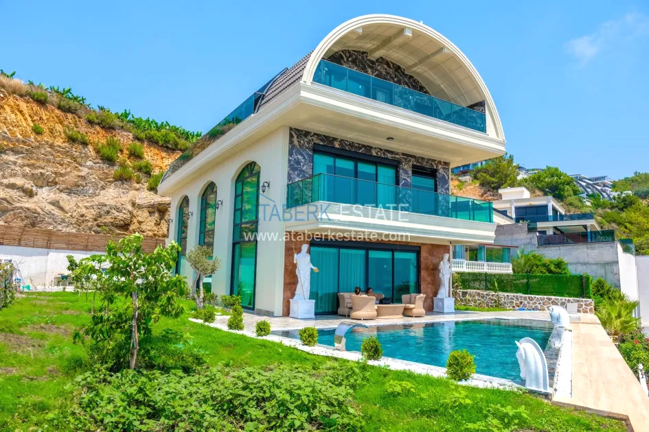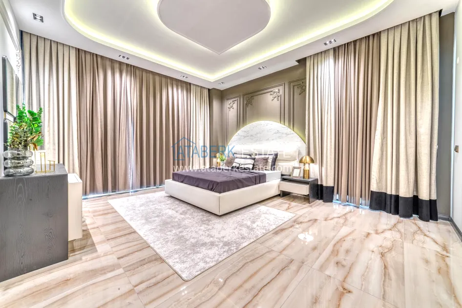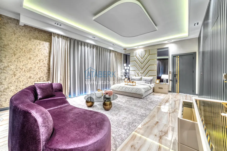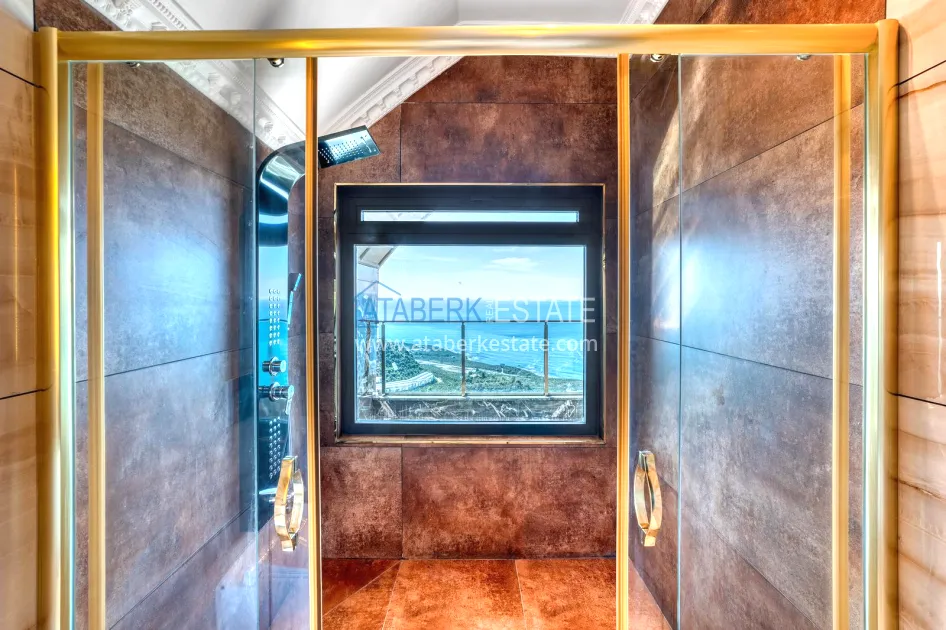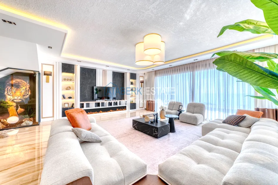An impressive three-story 6+1 villa with magnificent sea and mountain views is ideal for a comfortable life in Alanya. The designers have carefully thought out the organization of the space, where each room is designed for comfort and relaxation. The house includes a living room, a separate kitchen with a dining area, 6 spacious bedrooms, each with its own bathroom. There are also five balconies, a terrace, a hammam, a sauna, a fitness room and an elevator system. The total area of the villa is 440 m². The private area includes a swimming pool, winter garden, barbecue area and parking. The villa is built on a plot of 673 m2.