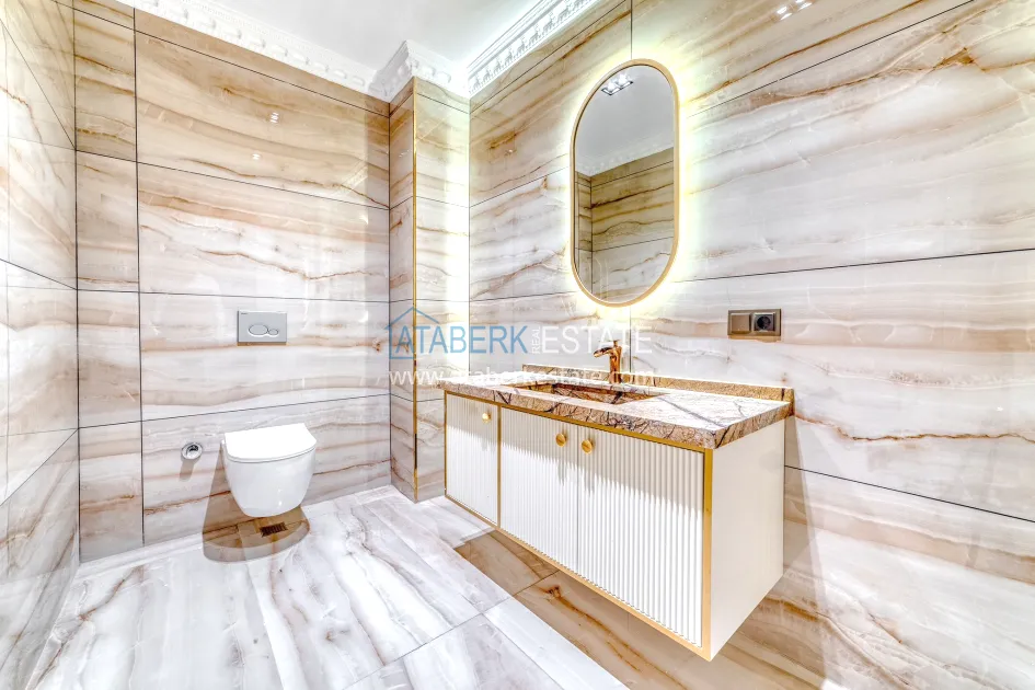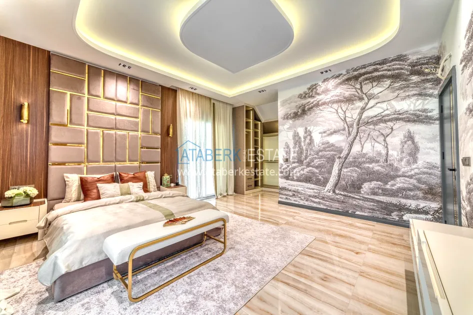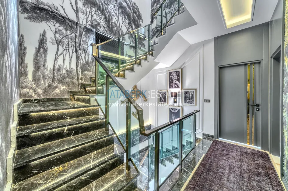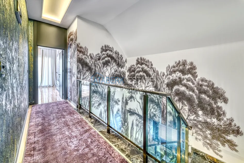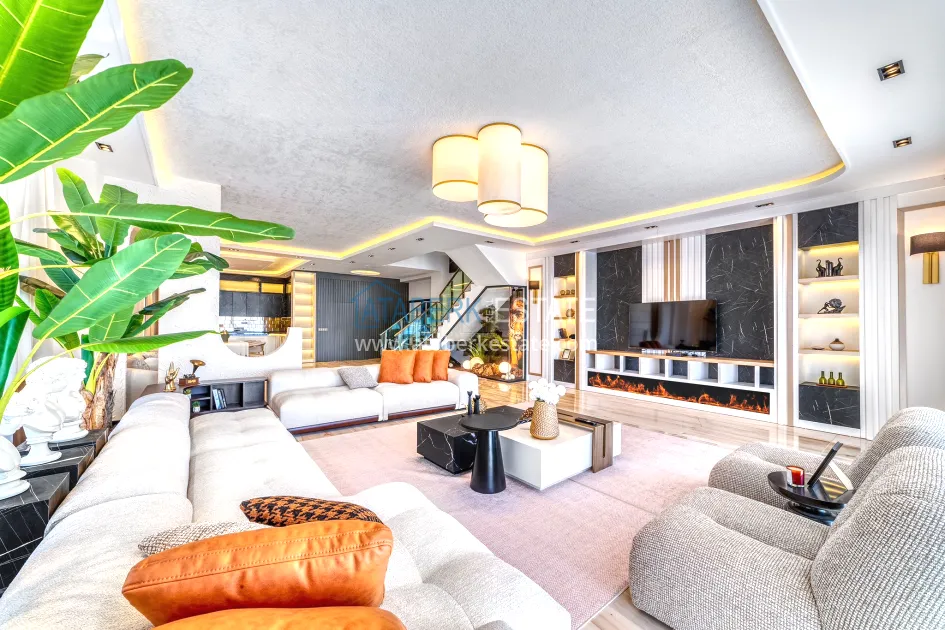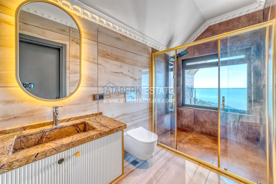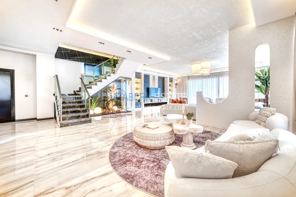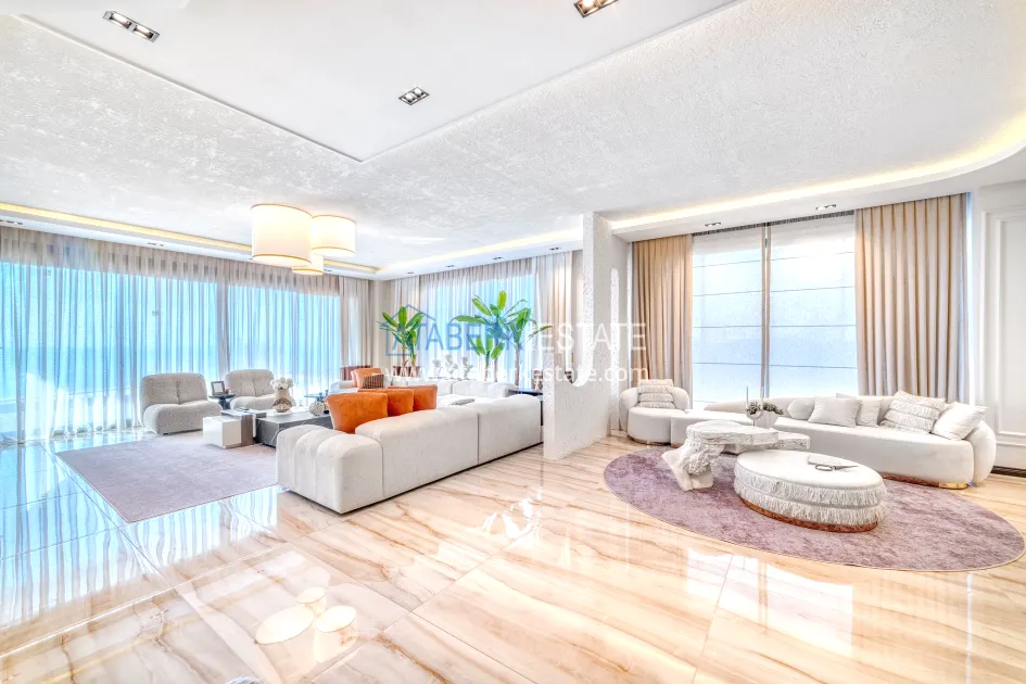An impressive three-story 6+1 villa with magnificent sea and mountain views is ideal for a comfortable life in Alanya. The designers have carefully thought out the organization of the space, where each room is designed for comfort and relaxation. The house includes a living room, a separate kitchen with a dining area, 6 spacious bedrooms, each with its own bathroom. There are also five balconies, a terrace, a hammam, a sauna, a fitness room and an elevator system. The total area of the villa is 440 m². The private area includes a swimming pool, winter garden, barbecue area and parking. The villa is built on a plot of 673 m2.