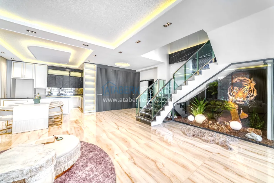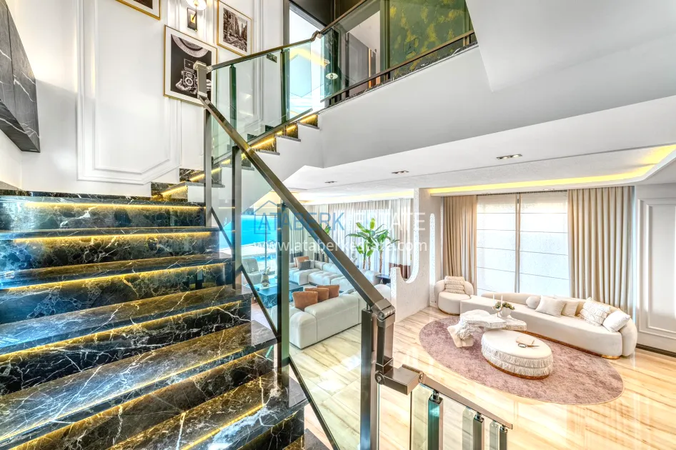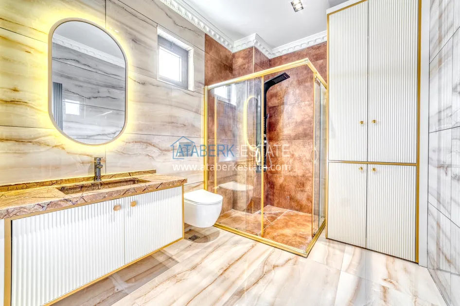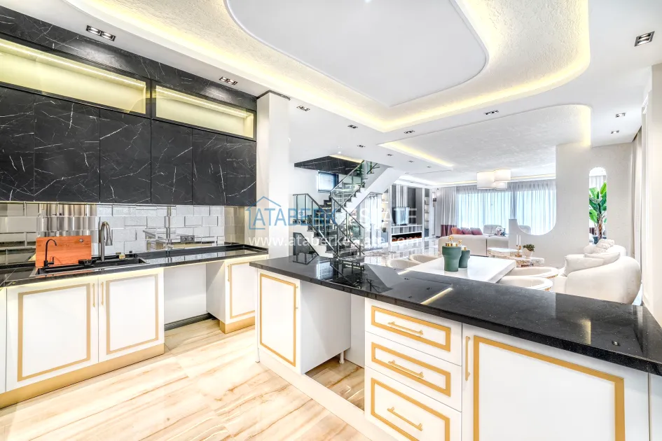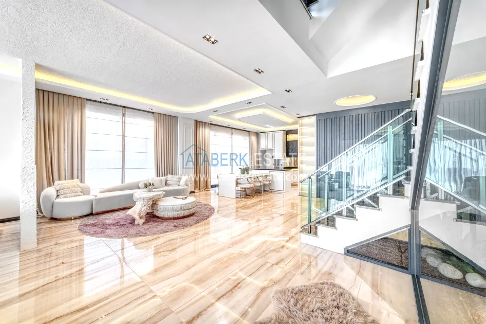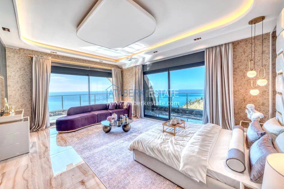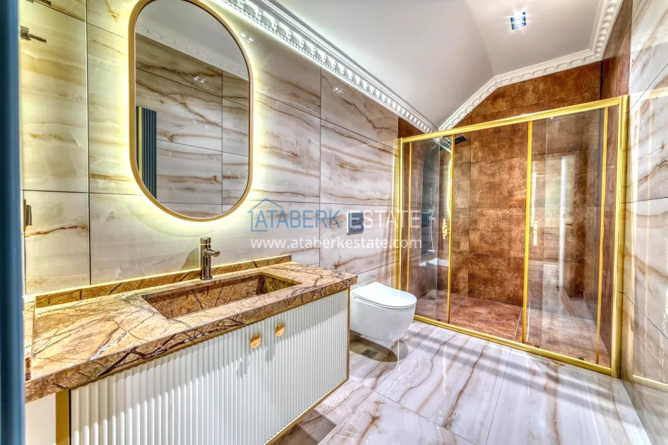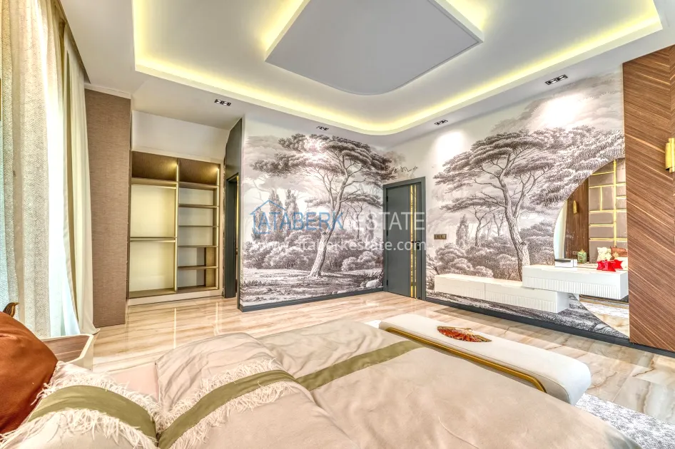 An impressive three-story 6+1 villa with magnificent sea and mountain views is ideal for a comfortable life in Alanya. The designers have carefully thought out the organization of the space, where each room is designed for comfort and relaxation. The house includes a living room, a separate kitchen with a dining area, 6 spacious bedrooms, each with its own bathroom. There are also five balconies, a terrace, a hammam, a sauna, a fitness room and an elevator system. The total area of the villa is 440 m². The private area includes a swimming pool, winter garden, barbecue area and parking. The villa is built on a plot of 673 m2.