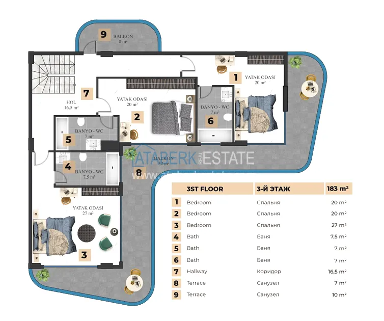 The villa is located in the elite district of Kargicak, a place where nature and luxury merge together. This is a quiet and secluded location in the green hills, but at the same time only a short drive from the center of Alanya. Here you will find fresh air, stunning sea views and a serene atmosphere ideal for living or relaxing.