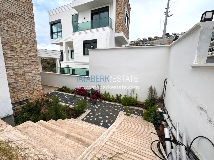 The villa is designed in a modern architectural style: natural stone decoration, large glass balconies, strict facade lines and panoramic windows offering stunning views of the sea, mountains and green surroundings. The three floors of living space are designed to provide maximum light and comfort. On an area of 250 m², there is a living room with an American-style kitchen, three bedrooms, four bathrooms, a sauna and three balconies. The finishing is high-quality and in a modern style, an automatic roller shutter system, as well as heating and air conditioning, has been installed - the villa is fully ready for personal decoration. The private area is fully landscaped: a green garden, an outdoor pool with a seating area, parking. Video surveillance and LED lighting all around the perimeter.