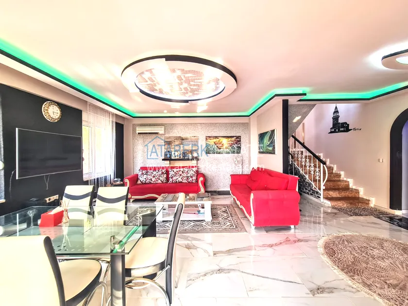 The villa is part of a complex consisting of 16 identical villas and a protected landscaped area with its own infrastructure - a large communal swimming pool and a spacious sun terrace with magnificent panoramic views. The complex is located in the coastal region - Kargicak at a distance of 850 meters from the Mediterranean coast.
