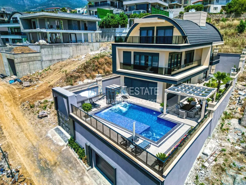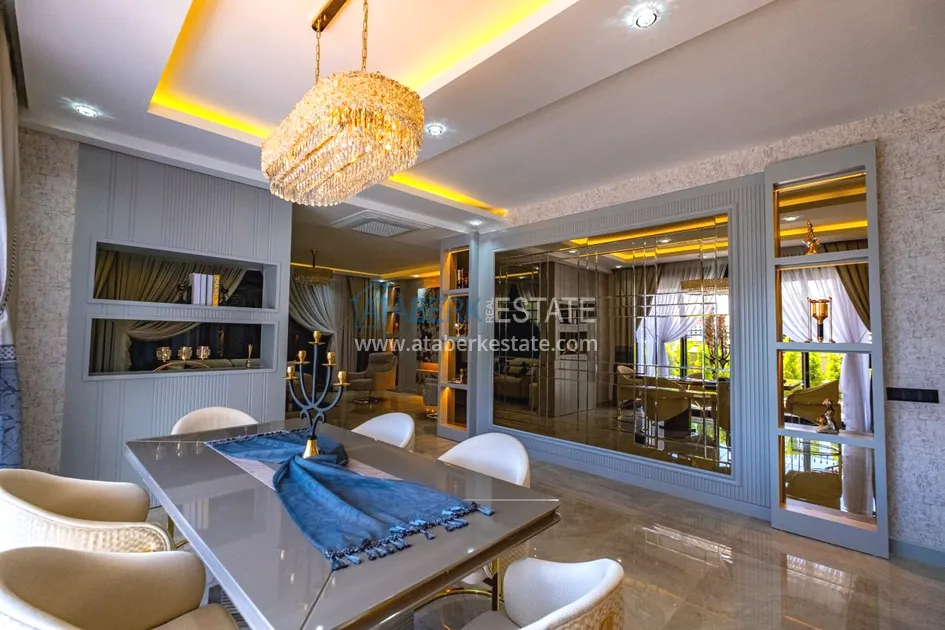 The villa is for sale with furniture and appliances, and you can be sure that everything shown in the photo will remain for you. The condition of the house is perfect, an elevator system is installed, automatic roller shutters from Casabella on the windows, complete heat and sound insulation, a steel entrance door of the Boyut brand, an interfloor staircase made of Iranian granite, LED lighting in all rooms and bathrooms, Windfree air conditioners in all Samsung branded rooms, glazed balcony and wrought iron bars. All balconies and terraces have waterproof sockets and water faucets. Special kitchen design "LAKE", all household appliances of the "Franke" brand, exclusive design of curtains, sofas and armchairs of the "Seyran" brand, chandeliers and Ultra-Lux class spotlights. Finishing of television furniture under "Indian Granite". Bathtub and faucets in bathrooms by Pierre Carden, shower cabins by Pano, toilets by Vitra, electric heated towel rails.