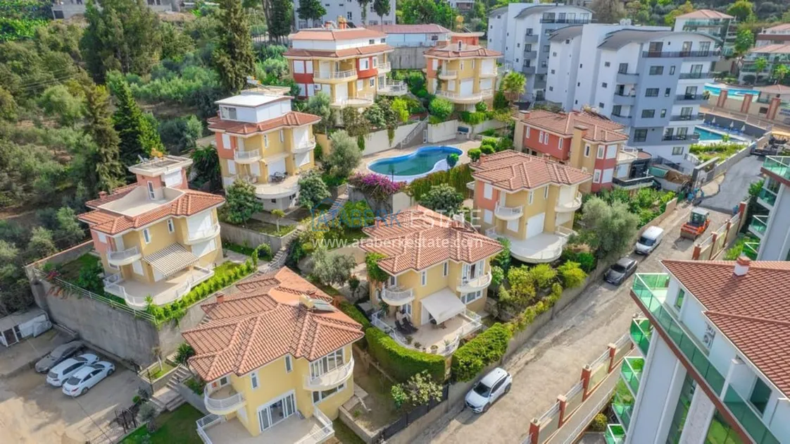 The property we offer is a part of this complex. It is a duplex villa of layout 4+1 total area is 260 m2 - four large bedrooms, cozy living room, open kitchen, three bathrooms, two balconies and a terrace. The house is fully furnished, each room is air conditioned, all appliances are available. Everything you see on the photo is included in the price of the villa. If desired, after purchase, you can immediately move in and live. Also the villa has a private yard.