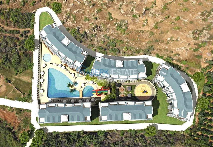 The complex includes studios with an area of from 32 sq.m., 1+1 apartments with an area of from 47 sq.m., 2+1 apartments with an area of from 95 sq.m., 3+1 apartments with an area of from 108 sq.m. and 3+1 and 4+1 duplexes with an area from 137 sq.m.