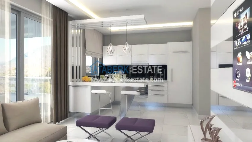 В комплексе представлены различные планировки: 1+1 (двухкомнатные квартиры), 2+1 (трехкомнатные) и квартиры-дублексы (3+1 и 4+1).