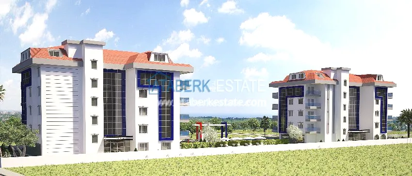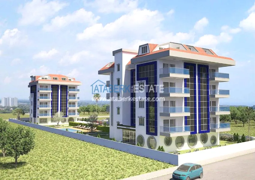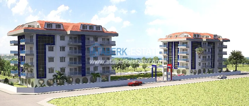 From a reliable developer there is a new residential complex within walking distance from the Mediterranean sea in the developing area of Alanya.The complex consists of two blocks, the apartments are sold with a high-quality fine finish (built-in kitchen and bathroom furniture, lighting, air conditioner in each room, electric water heater are included in the price).