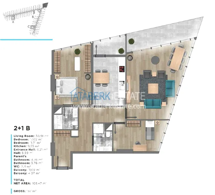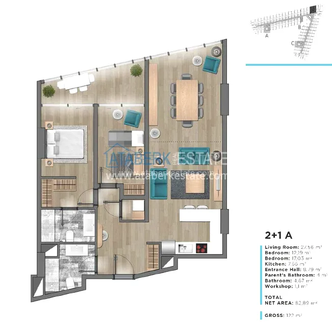 Студия с мебелью в Кестель.