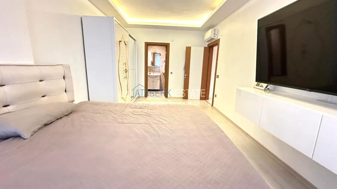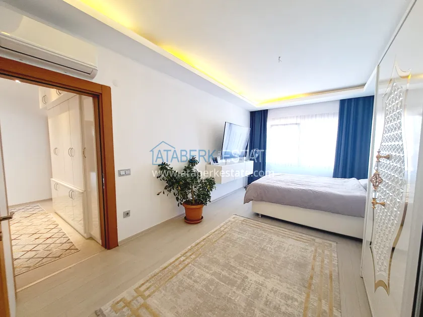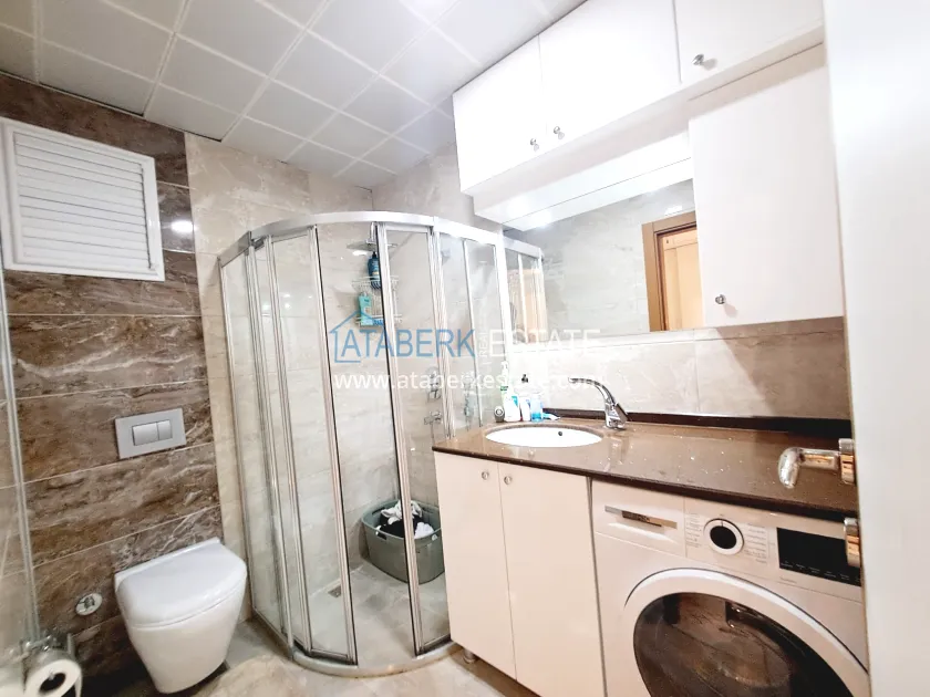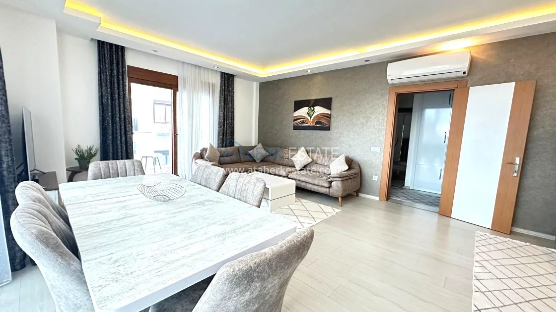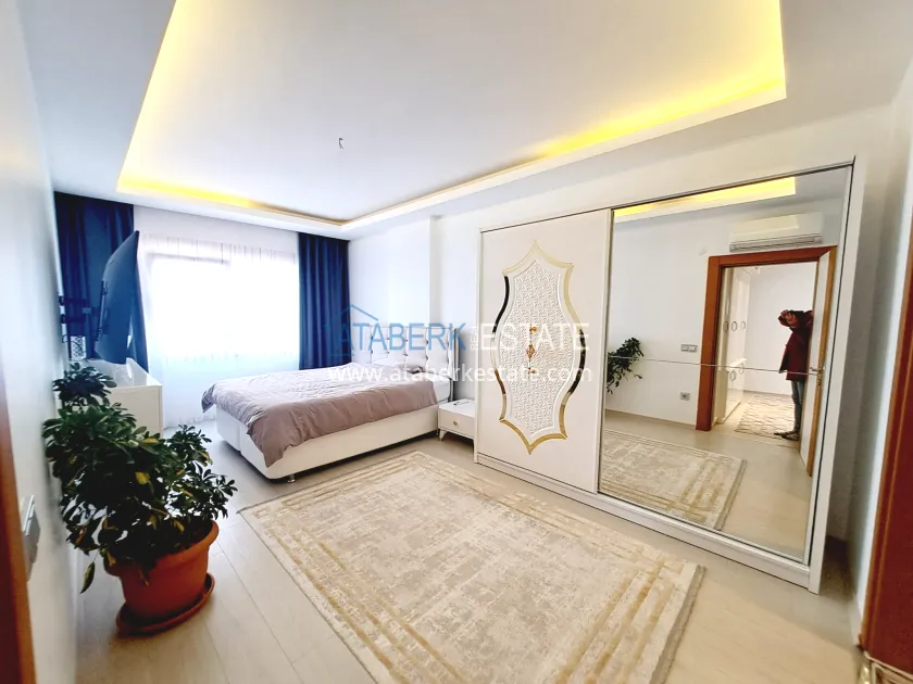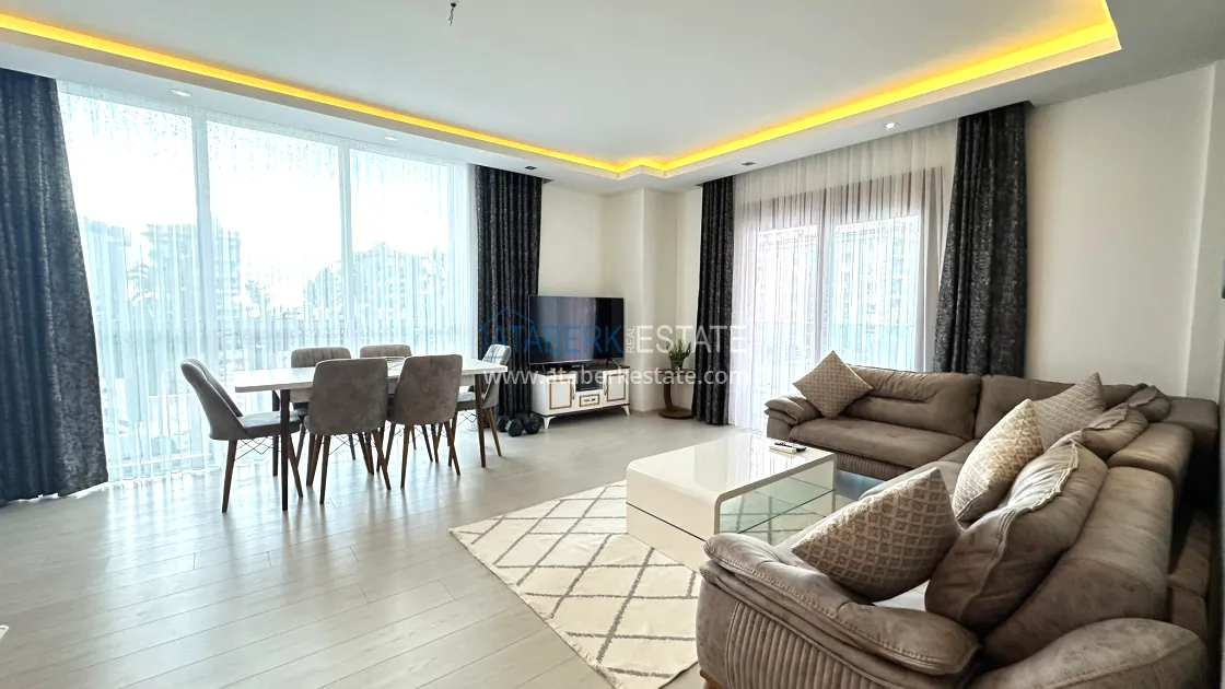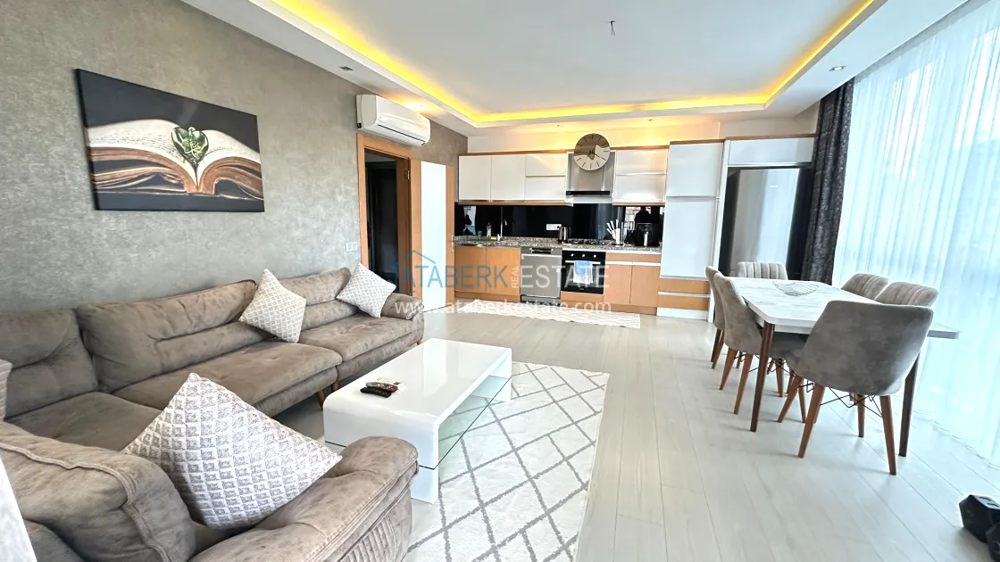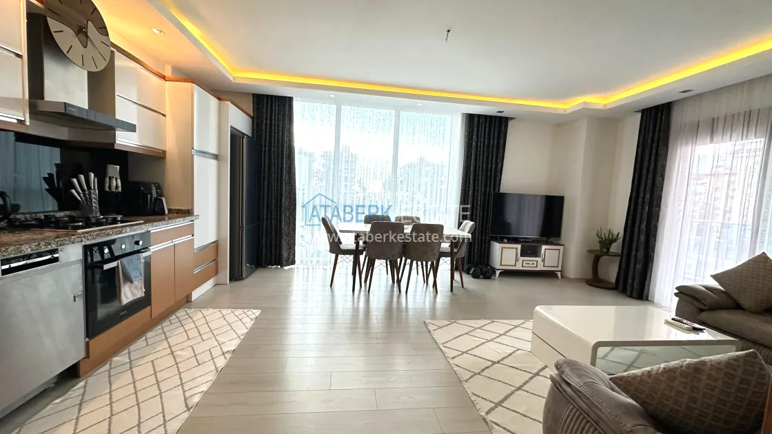 The 2+1 layout apartment with an area of 120 m² is located on the high 1st floor. The space includes a living room combined with an American-style kitchen, two bedrooms, two bathrooms and a balcony. The apartment is sold fully furnished and in the form shown in the photo, which allows you to move in immediately and enjoy comfort.