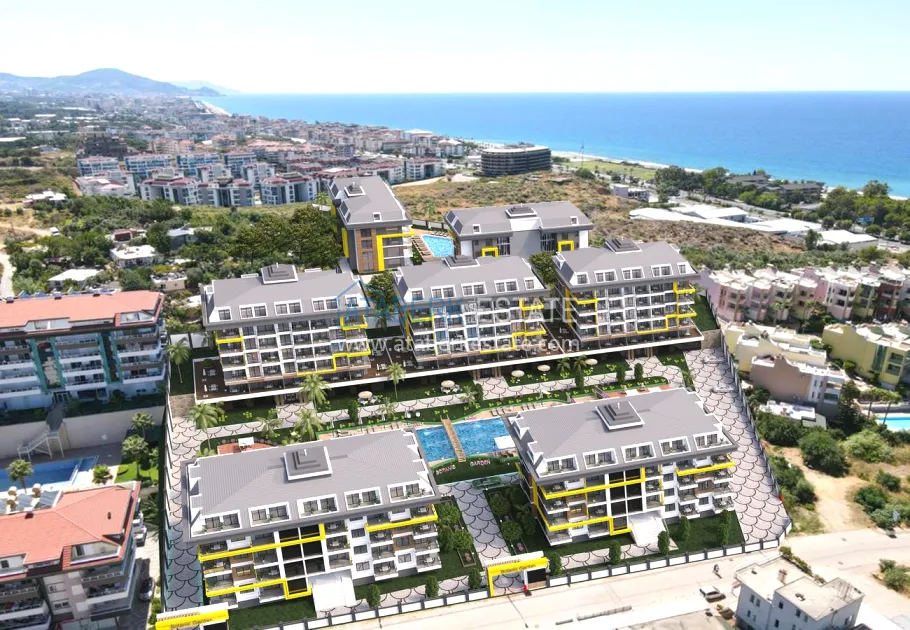 The residential complex consists of seven five-story blocks and has a landscaped area with infrastructure for recreation and comfort. The beach is only 400 meters away, and shops, cafes and public transport stops leading to the center of Alanya are within walking distance.