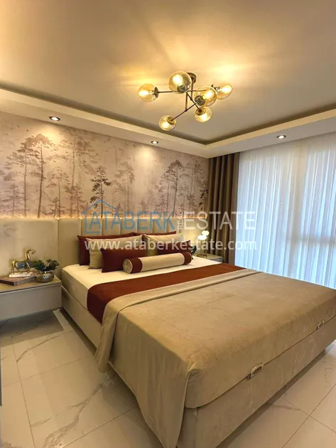 the complex. The1+1 apartment is located on the 4th floor and the total area is 55 m². The layout includes a spacious living room with a wide American-style kitchen, a bedroom, a bathroom and a balcony. The main advantage is a full open view of the sea and the fortress of Alanya, which opens from a floor height. The apartments are sold furnished, the interior is neat and functional, which allows you to use the apartment immediately after purchase without additional investments