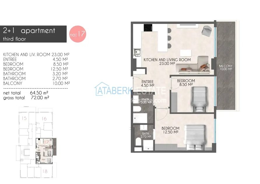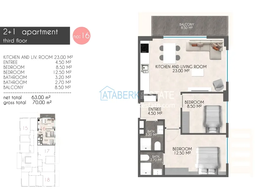 Offered for sale: apartments and penthouses of 2 + 1 layout, with a total area of 72 sq. m. Due to the location of the complex, almost all apartments offer sea views. The cost of all apartments includes: fine finishing, complete bathrooms, a set of cabinet kitchen furniture, automatic roller shutters and air conditioners.