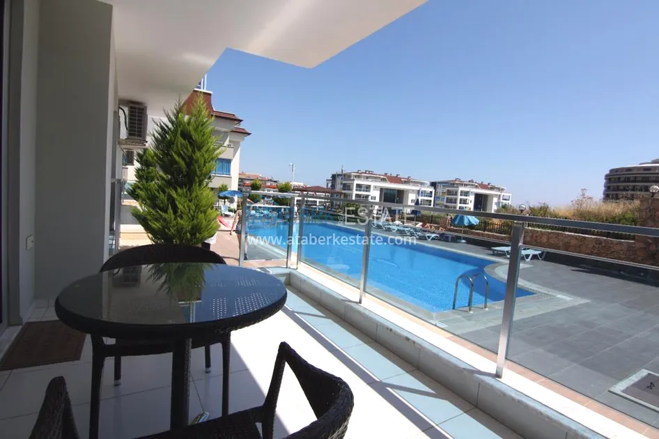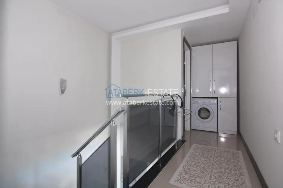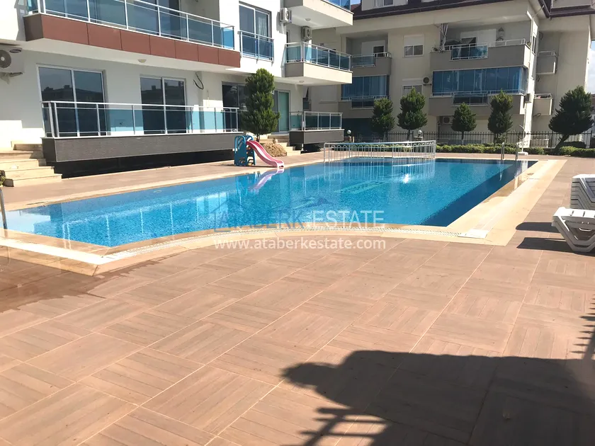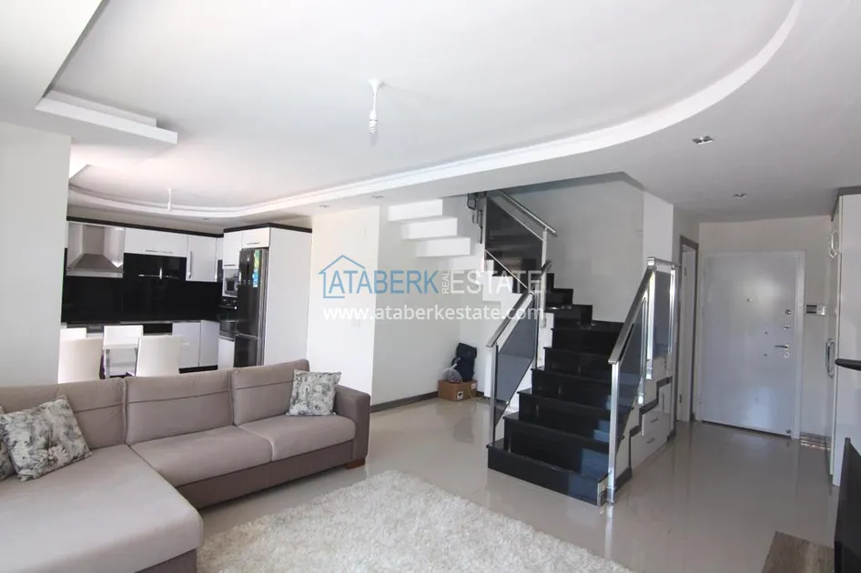 1. The residential complex consists of two 6-storey blocks and a green, well-groomed area. Aydat is 180 lira per month. The two bedroom apartment occupies two floors (1 and 2), layout 2 + 1, total area 150 sq. m. On the ground floor there is a living room combined with an open-plan kitchen, a guest bathroom and a balcony with access to the pool. On the second floor there are two bedrooms, a shared bathroom and a shared balcony.