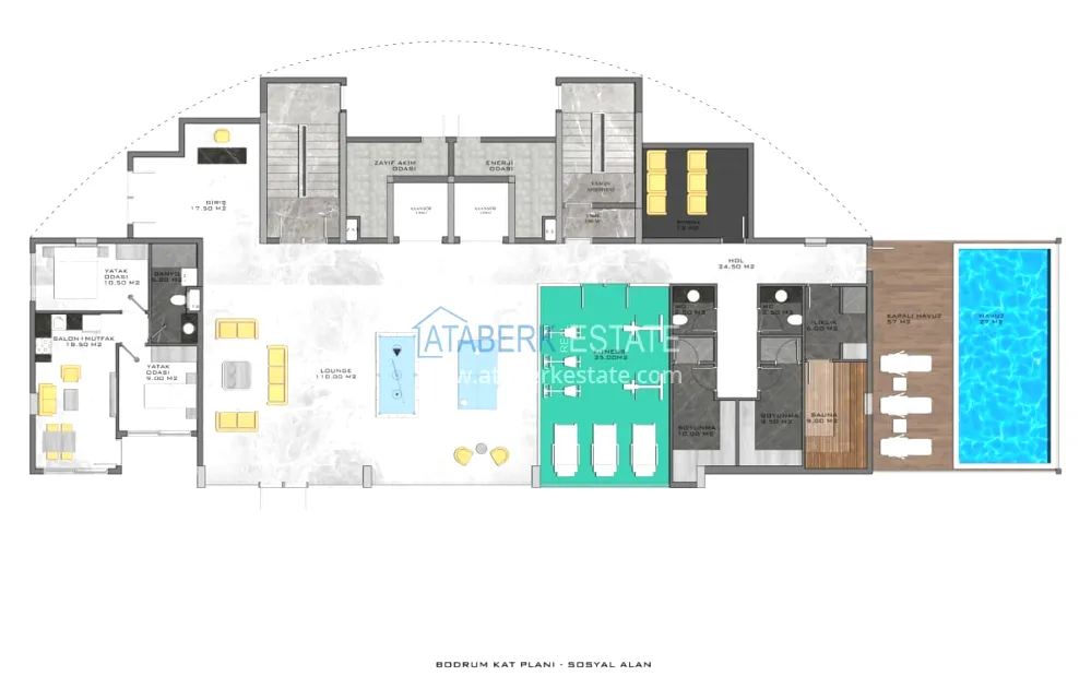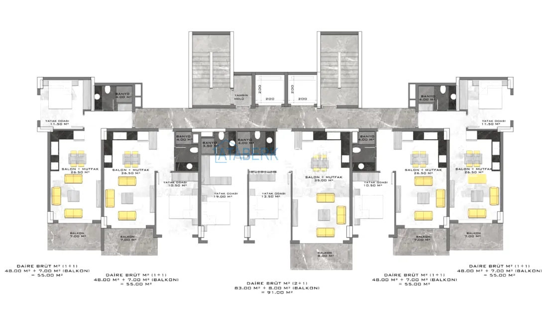 The complex will be located at the foot of the mountains in the elite residential area of Alanya - Kestel, at a distance of 2.3 km from the landscaped embankment. The project will be implemented on a plot of 3200 m2, will include one block of 47 apartments and a closed landscaped area with a variety of services.