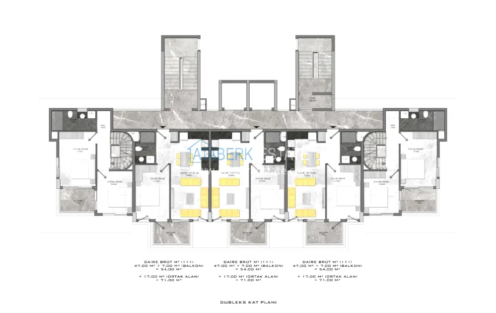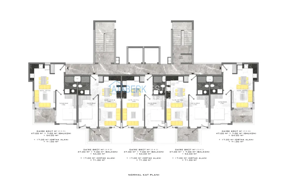 There are 1 + 1 apartments to choose from with an area of 54 m2. The price includes full finishing, built-in kitchen, all necessary plumbing and fully equipped bathrooms. A gift from the developer is a set of household appliances and air conditioners.