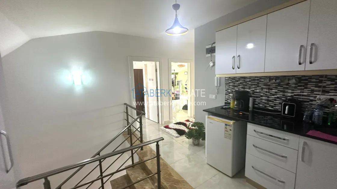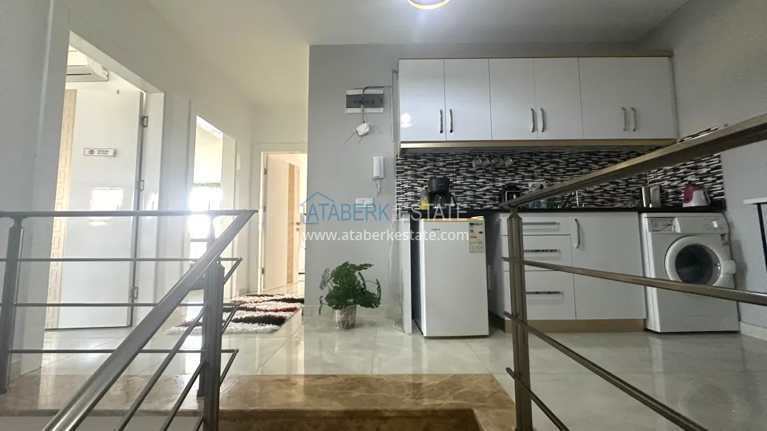 The offered property is located in a beautiful, cozy, European-style complex with a green, well-maintained area and well-maintained infrastructure. The residential complex is located in the elite district of Kestel, where the city infrastructure is well developed: shops and supermarkets, a bakery, bars and restaurants, ATMs, a well-maintained promenade within a 5-minute walk from the complex with bike paths, gazebos, benches — the dream of lovers of long walks and an active lifestyle. Well-developed transport links that allow you to easily move between the districts of Alanya. And on top of that, it is in this area that a private Russian-language school and kindergarten are located.