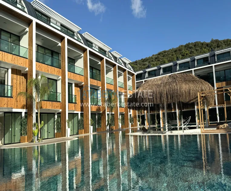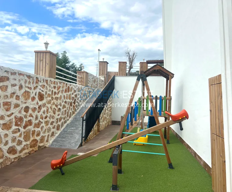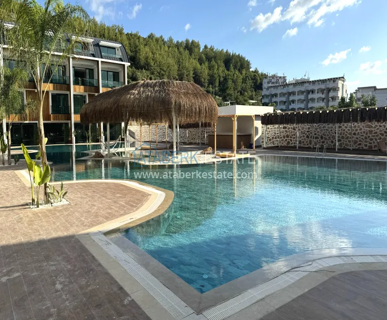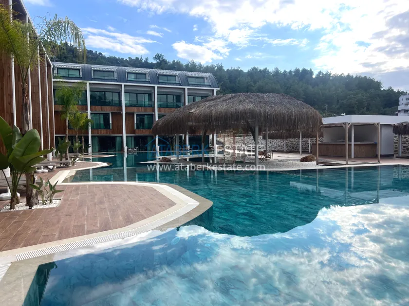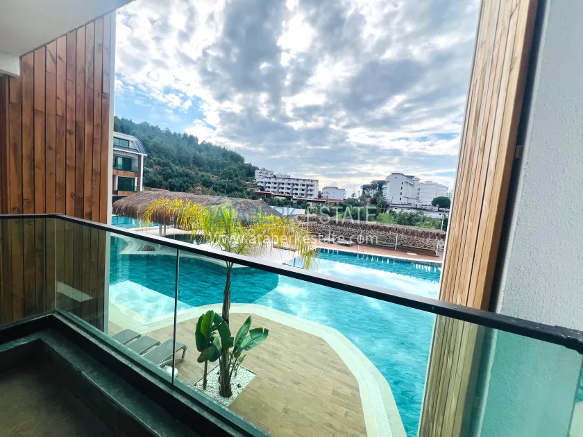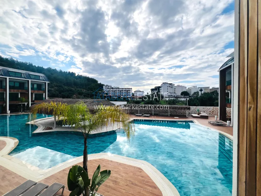 A 2+1 apartment with an area of 105 m², location 1-2. On the first level, there is a living room with an American-style kitchen, a guest bathroom and a terrace that leads directly to the pool, creating a feeling of open space and lightness. The second floor consists of a private bedroom area: two cozy rooms, two combined bathrooms and one balcony. The apartment is new, unfurnished, with high-quality finishing, ready for individual furnishing and decoration.