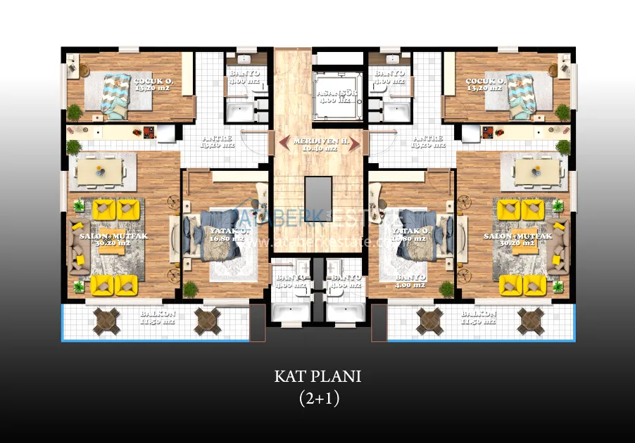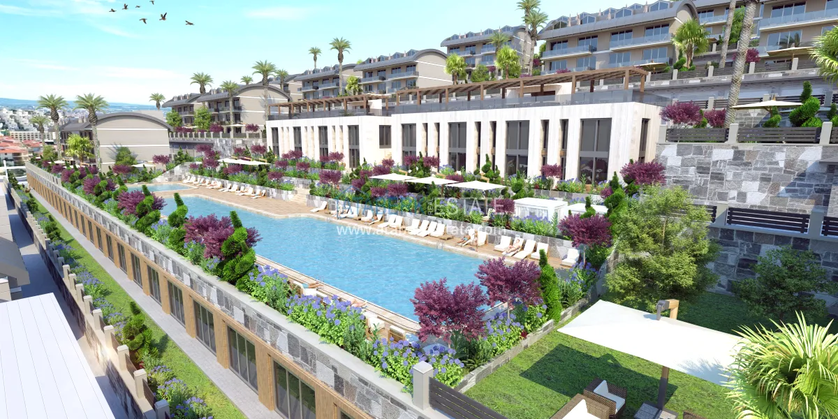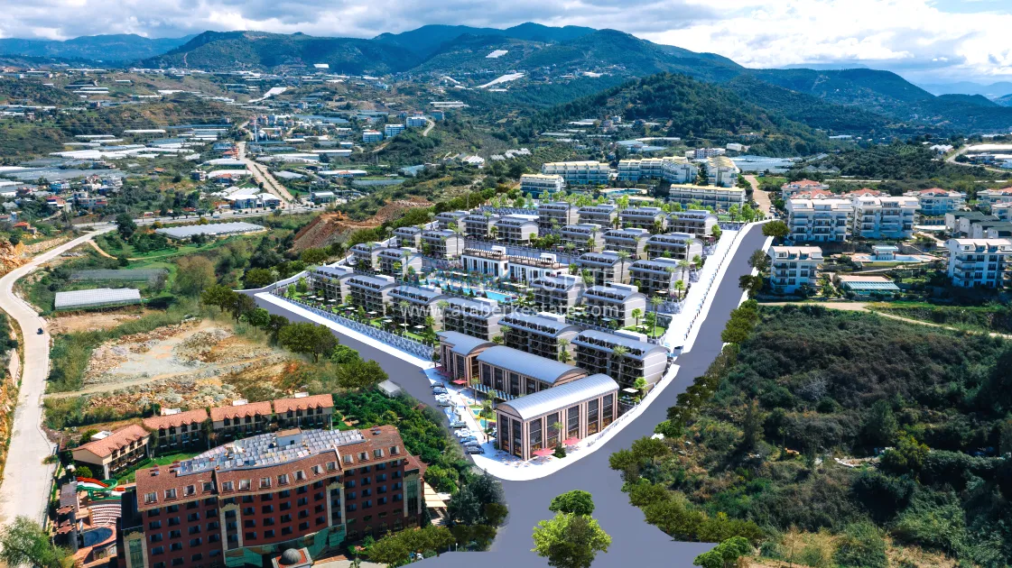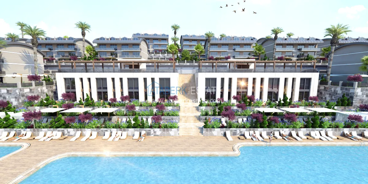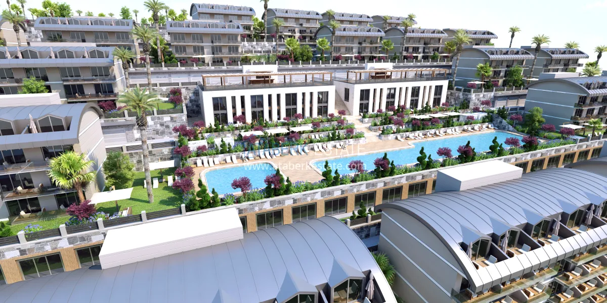 The complex will be located in the suburbs of Alanya - Konakli district, 280 meters from the coast. Will be implemented on a plot of 27,816 m2, will include 3 blocks with commercial real estate and 24 blocks with apartments of various layouts ranging from 54.7 to 220 m2 - one-level apartments 0 + 1, 1 + 1, 2 + 1, as well as duplex penthouses and garden duplexes 1+1, 2+1, 4+1. All apartments will be rented out with full quality finishes, built-in kitchen furniture and fully equipped bathrooms.