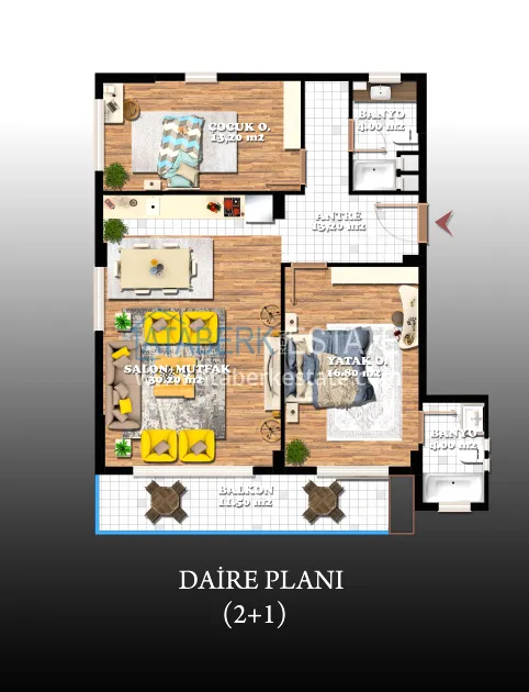 The project is carried out by a reliable construction company that has successfully established itself in the Turkish real estate market. The commissioning of the complex is scheduled for September 2023. With an initial payment of 35 or 50% of the cost, there is an interest-free installment plan until the end of construction.