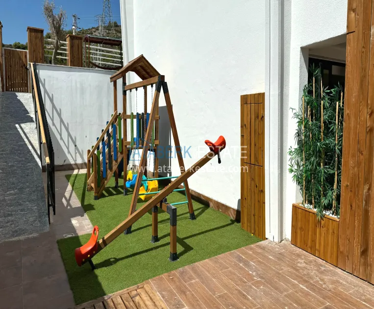 The residence is sold on a plot of 4,348 m2 and consists of three blocks of 4 floors each - 36 apartments in total, only 2+1 and 5+1 duplexes with an area of 105 and 210 m2. The apartments are for sale with high-quality finishing, equipped with bathrooms and built-in kitchen units. The complex also provides recreation areas and a variety of infrastructure. The Mediterranean coast is just 300 metres away.