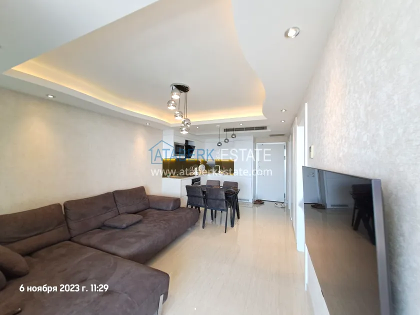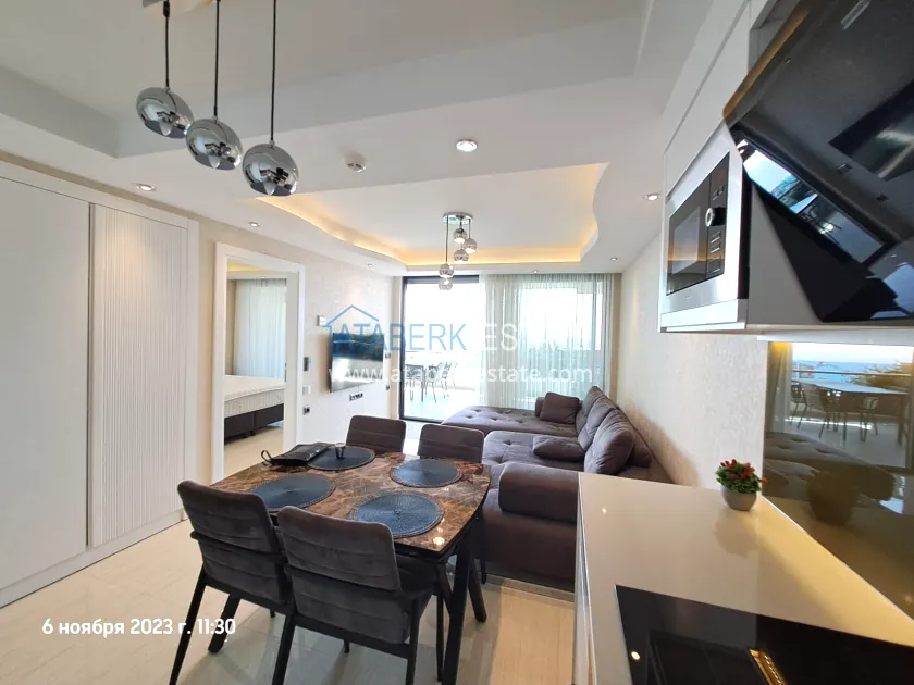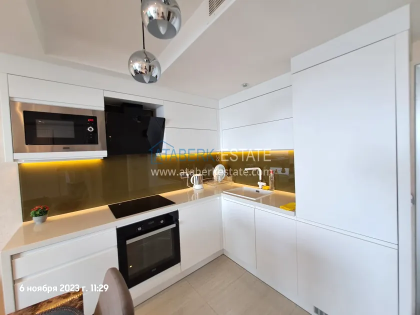 It's safe to say that you'll fall in love with this apartment as soon as you walk through it. Everything about it is beautiful, from the stylish interior to the view from the large panoramic windows and the balcony. The apartment has “Smart Home” and “warm floor” systems. The property is for sale with all furniture and appliances — everything is as pictured. The apartments are located on the 1st Turkish floor — actually the 2nd floor, the total area is 92 m2. The interior space is planned as follows: a living room combined with an American-style kitchen, one bedroom, a combined bathroom and a spacious balcony with access from all rooms.