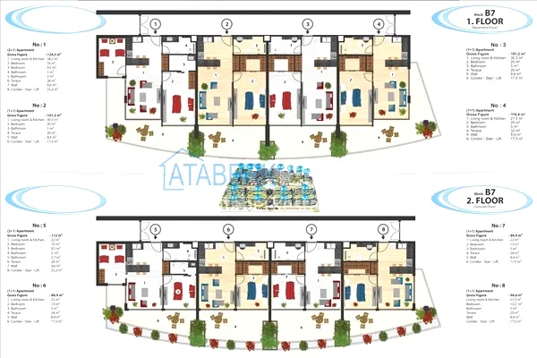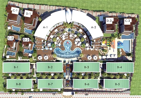 The complex offers five-star hotel living. It is located in the Konakli district, 10 km west of the center of Alanya. The residence has a unique location - 100 meters above sea level, has an extensive protected area of 16,000 m2, self-sufficient infrastructure and high-quality service. The architecture of the buildings is designed in a maritime theme. The residential complex is located just 700 meters from its own beach. In addition, this is the only complex in the Konakli area that has its own beach club and pontoon slides, and the beach has a pier where you can dock your yacht. A busy road is located a kilometer from the residence — no noise, vibrations or polluted air, just the sea outside the window and ideal environmental conditions.