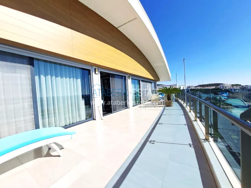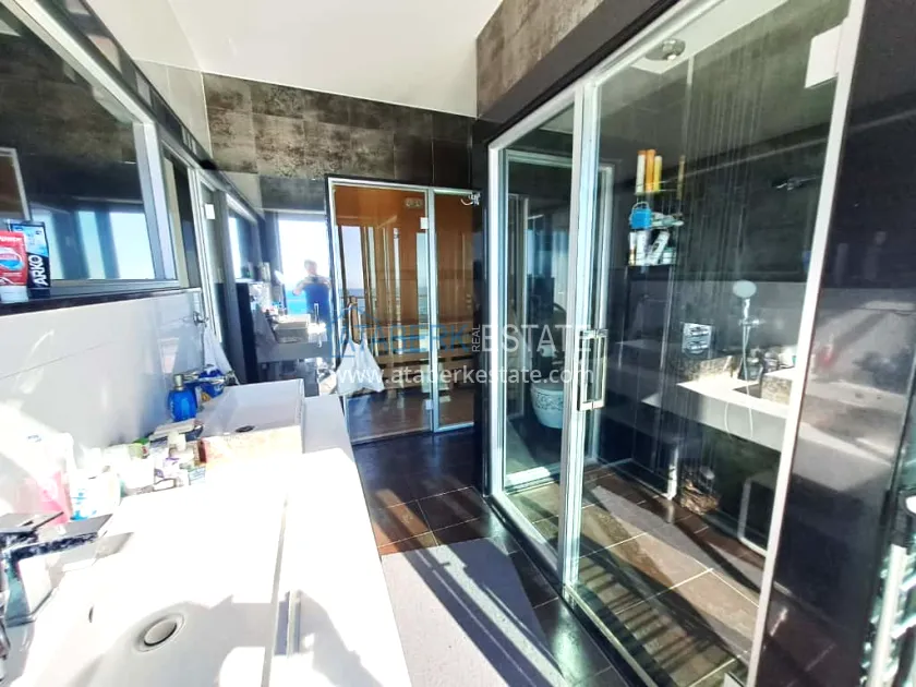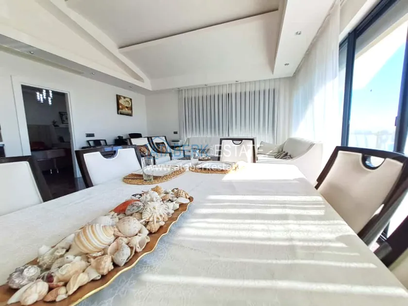 The proposed 3+2 property is located on the upper two floors (3-4), with a total area of 296.5 m2. The layout includes: a living room combined with an open-plan kitchen, a relaxation room, three bedrooms, a bathroom, a spa area with a private sauna, a jacuzzi and two balconies with panoramic sea views. The apartment also has a double floor heating system and a hidden air conditioning system. The apartment is designed in a laconic style using natural stone. We have our own garage. It is sold in the form in which it is shown in the photo.