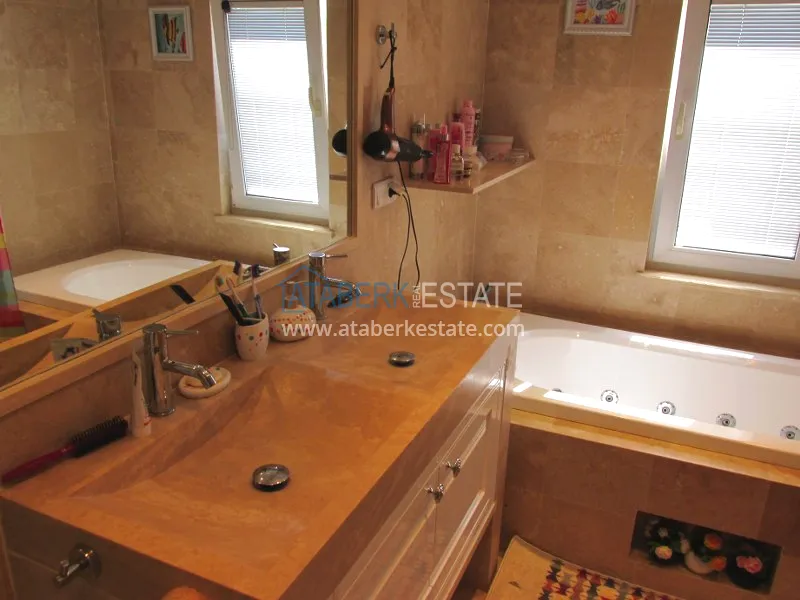 The complex Oazis 2 within 74 villas takes the height place in the Konakly, from where you can see the beautiful views of natural beauty of the city of Alanya . The villa has an original and unique design with the gardens which are ideally emphasizing its beauty. Terraces which surrounded a villa are perfectly adapted for careless rest for you and your family in an environment of green foliage, various flowers. On them you will be able to be located on a comfortable little table or a rocking-chair and to admire azure color of the Mediterranean Sea (to which 400 m on the direct road). This complex of villas with own sandy beach on which there is all necessary for well sea rest: plank beds, umbrellas and bar with cold drinks and a service of the order of food on the beach.