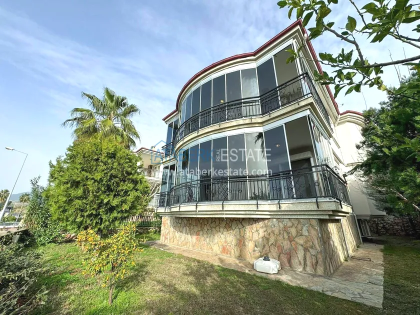 The3+1 layout villa with a total area of 300 m² is located on a plot of 400 m² and is offered furnished. On the first level: a living room with a fireplace, a separate kitchen, a bathroom and a spacious glazed balcony. On the second level, there are three bedrooms, a large bathroom, a storage room and another very spacious glazed balcony. The south-east-west orientation provides natural light throughout the day, and the sea view enhances the sense of space and comfort. The balcony has a BBQ area, which makes relaxing and welcoming guests especially comfortable
