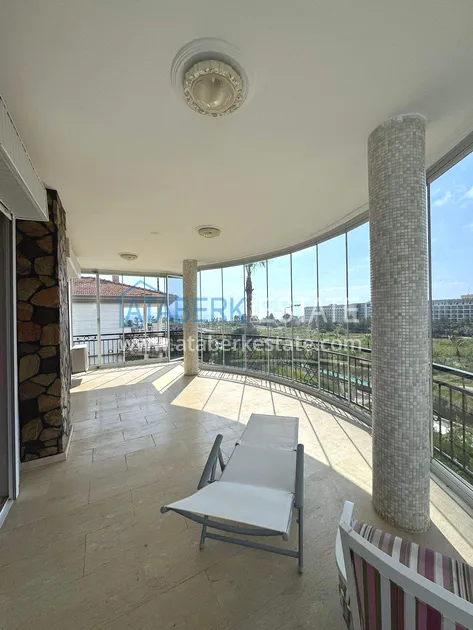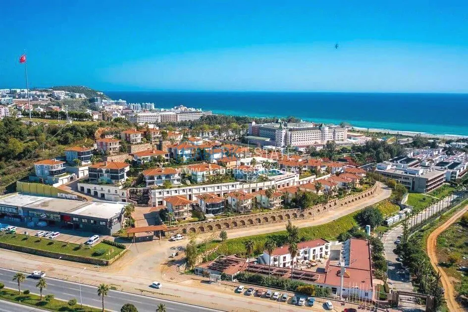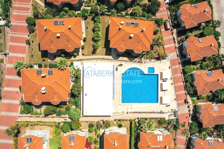 The villa is located on the territory of a well-maintained cottage complex designed in the style of a European village. The complex's location on a slight elevation creates a sense of privacy, offers views and adds lightness to the space. The area is green and neatly decorated: walking paths, palm trees, ornamental plants, swimming pools and recreation areas create a quiet, intimate atmosphere. Access is controlled, entrances are closed, and parking zones are provided. The beach is only about 400 metres away.