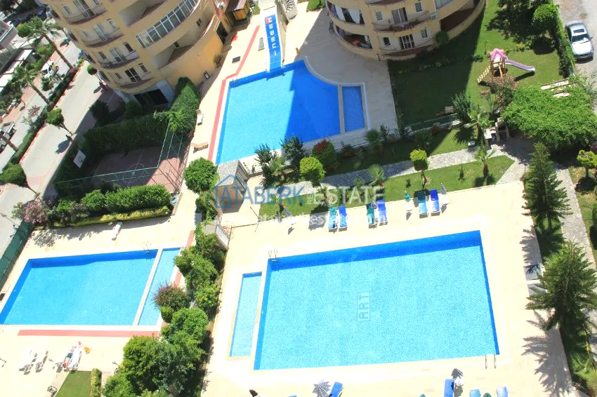 The complex is located 300 meters from the Mediterranean Sea. Public infrastructure is also located close: parks, cafes, restaurants, shops, supermarkets, bakeries, a bazaar, a transport interchange, a bus stop.