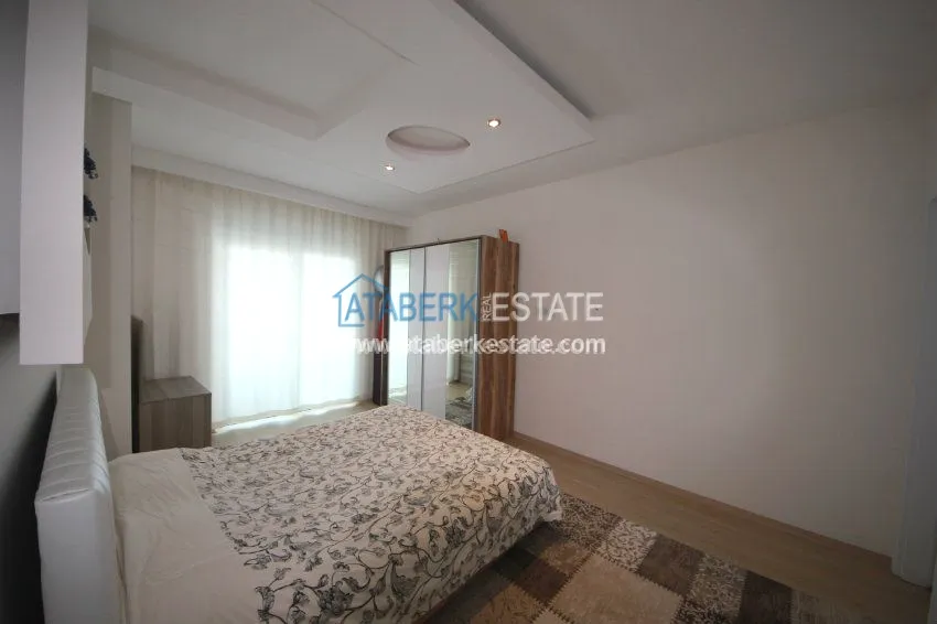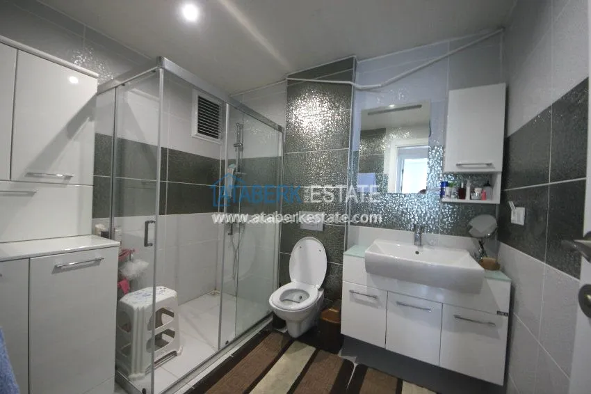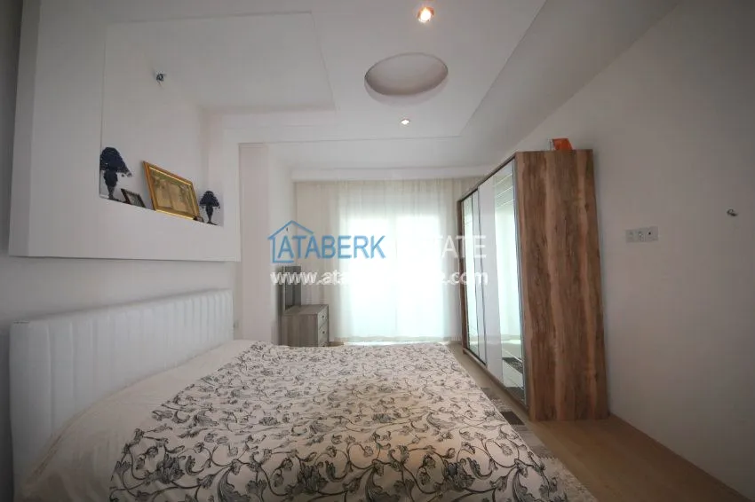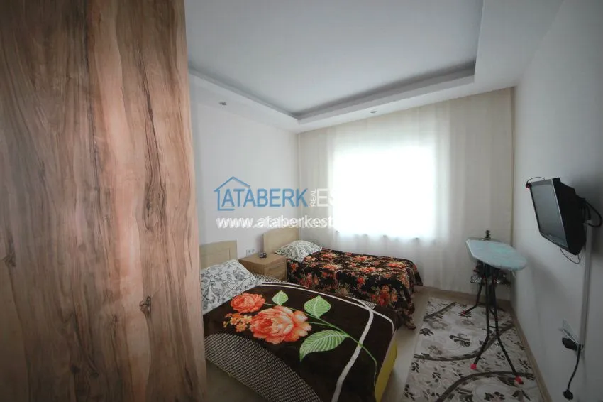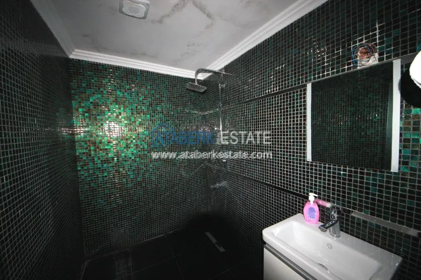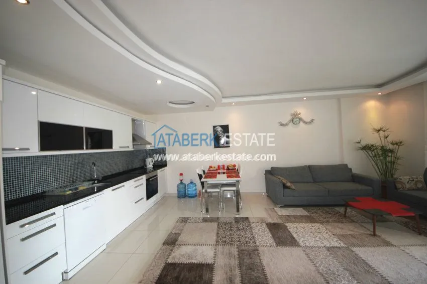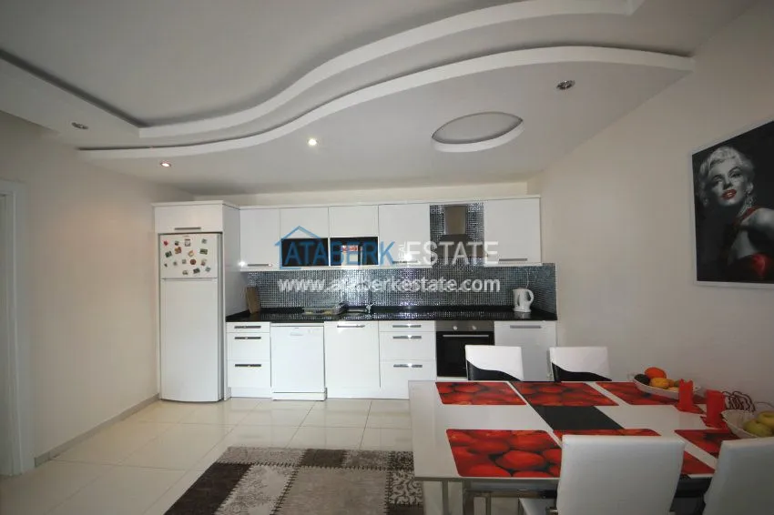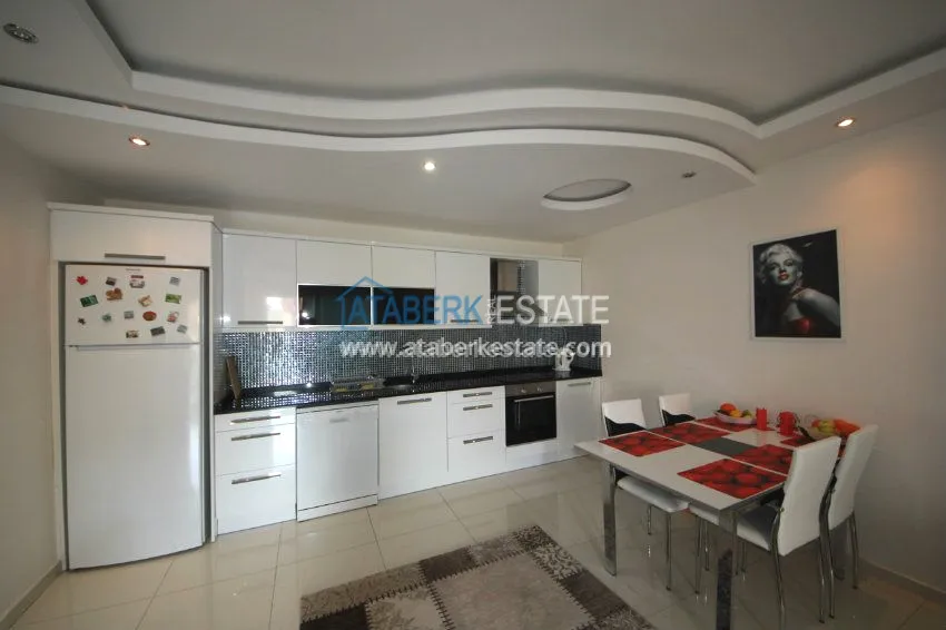 The apartment is located on the 3rd floor and has panoramic views of southern and western Alanya and the Mediterranean coast. The fully furnished apartment is sold with all necessary appliances.