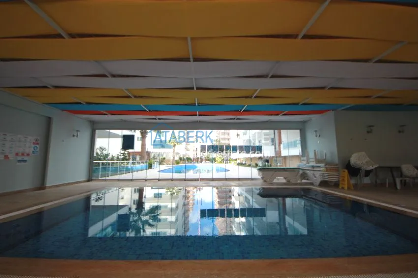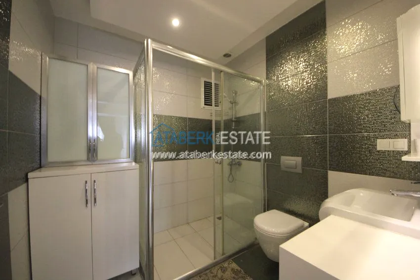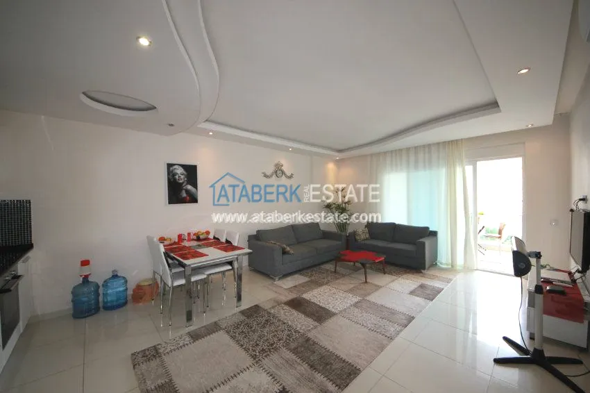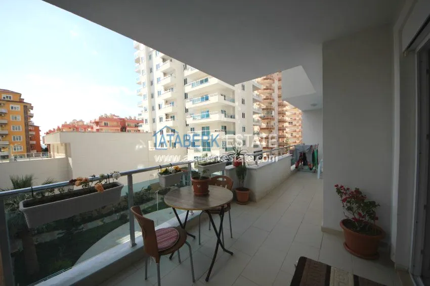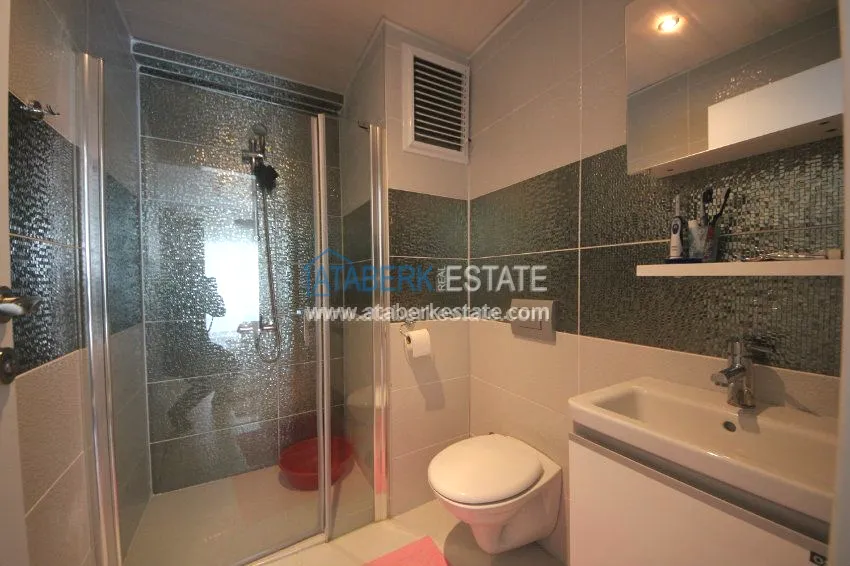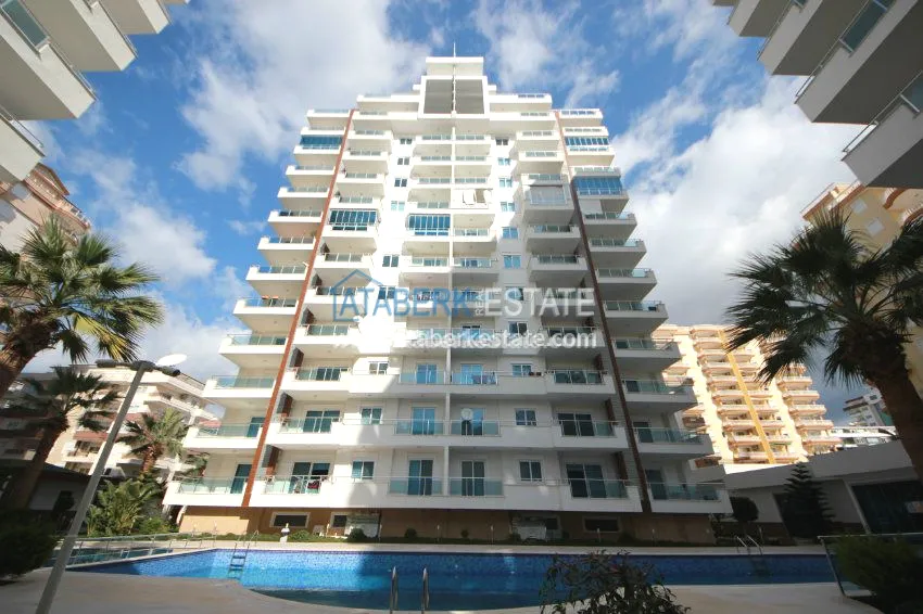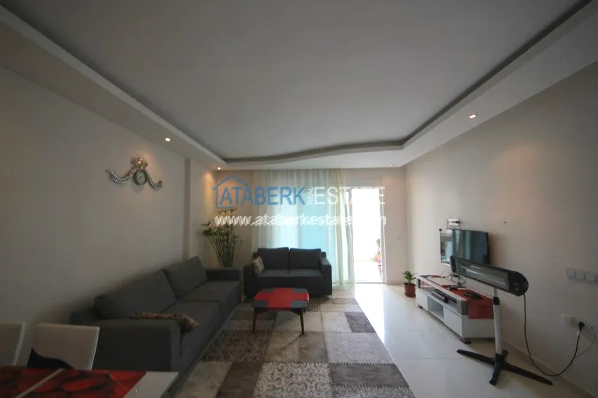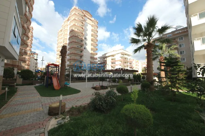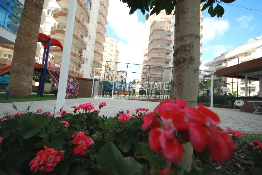 The apartment is located on the 3rd floor and has panoramic views of southern and western Alanya and the Mediterranean coast. The fully furnished apartment is sold with all necessary appliances.